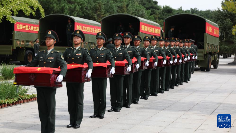 9月12日,第十二批在韩中国人民志愿军烈士遗骸回国。这是志愿军烈士遗骸抵达沈阳抗美援朝烈士陵园。新华社记者 杨青 摄