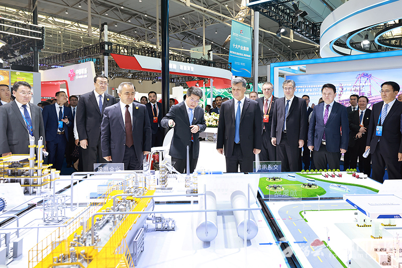 6月26日,自治区党委书记马兴瑞,自治区党委副书记、自治区主席艾尔肯·吐尼亚孜等与中外嘉宾共同巡馆,察看重点展区设置和展示情况。天山网-新疆日报记者 崔志坚摄