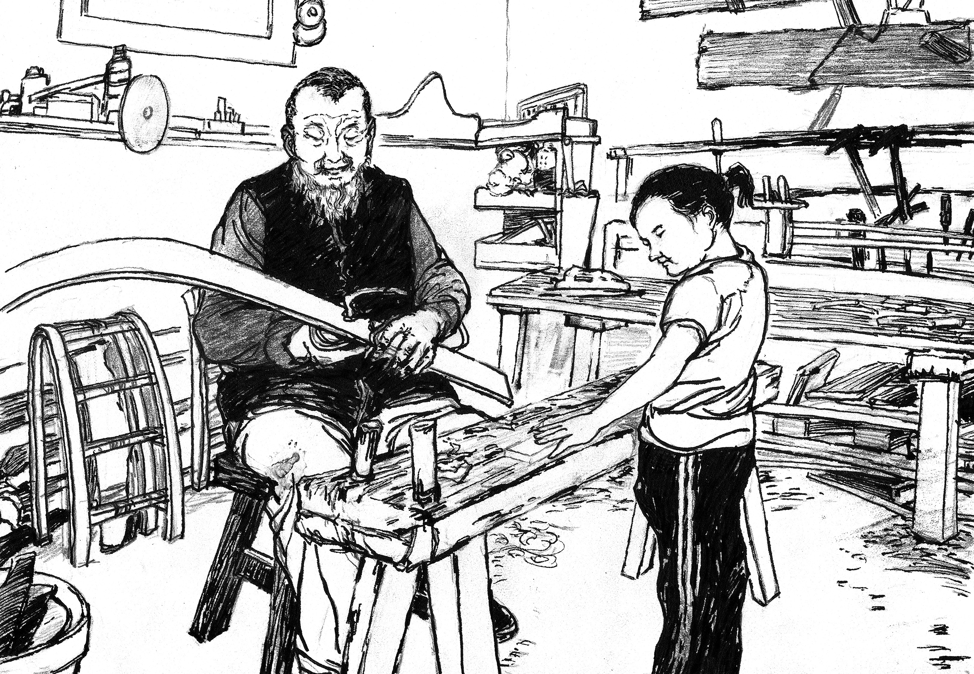 6 做好一副毛皮滑雪板大概需要15天,每一个制作环节都需要精湛的技艺和一定的经验?;┌灏逍灸静淖詈醚∮冒姿苫蚝焖?,因其具有轻便、结实、不变形的特点。