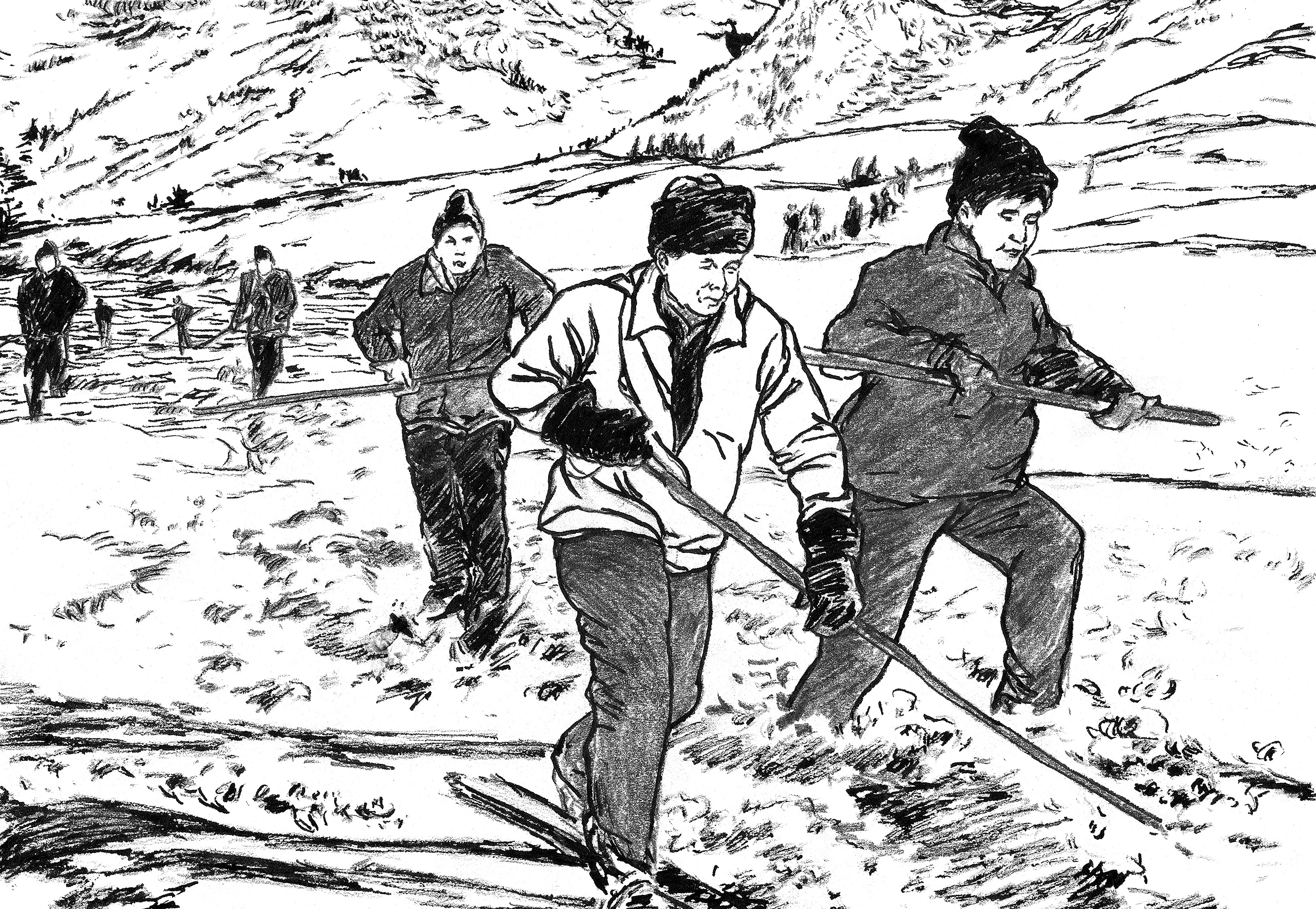 9 单兆鉴在阿勒泰或徒步、或骑马,爬冰卧雪、矢志笃行,一个村庄一个村庄地察问、一片牧区一片牧区地追寻。很多人劝他放弃,他毅然决然地坚持着。2004年,他完成了《中国新疆阿勒泰地区具备了人类滑雪起源的一切基本条件》的研究。