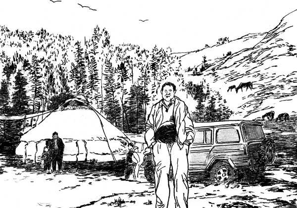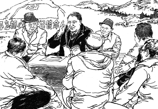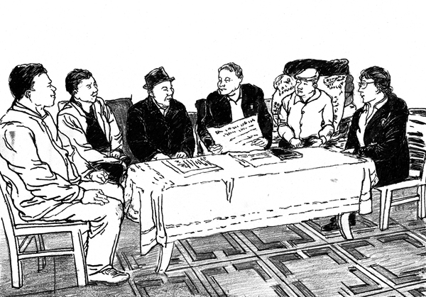 49 马丁别克和退休干部们一起,在夏牧场开展“党的政策进牧区”巡回宣讲,受到牧民们的一致称赞。