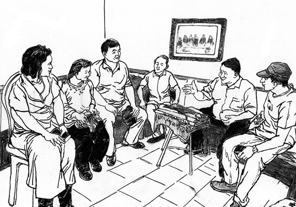 46 马丁别克和宣讲团的成员们用百姓语言,通过阿肯弹唱、唱红歌、演小品、说身边事等群众喜闻乐见的形式,开展无障碍、零距离、面对面地宣讲,讲好小故事,讲清大道理,把党的声音传播到了乡村牧区、田间地头。