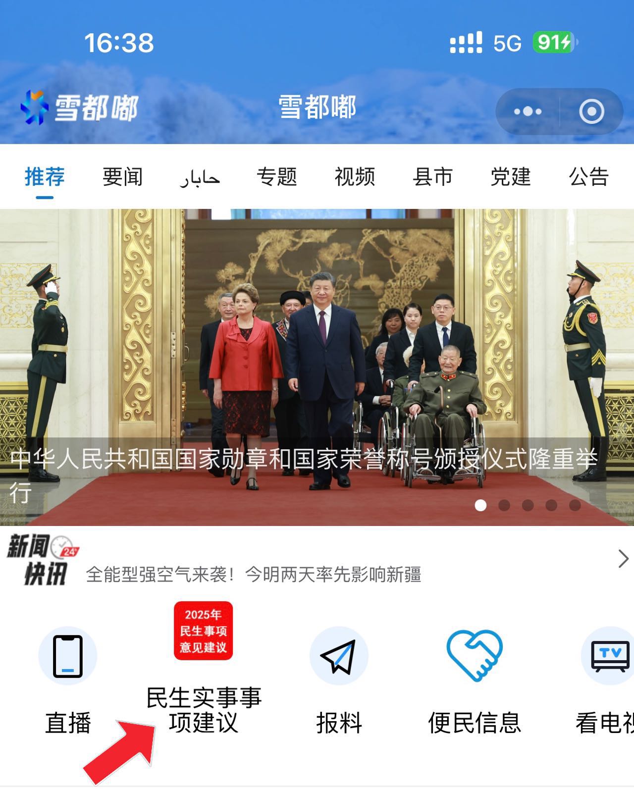 方式二:微信搜索“雪都嘟”客户端小程序,首页点击“2025年民生实事事项建议”即可提出建议。