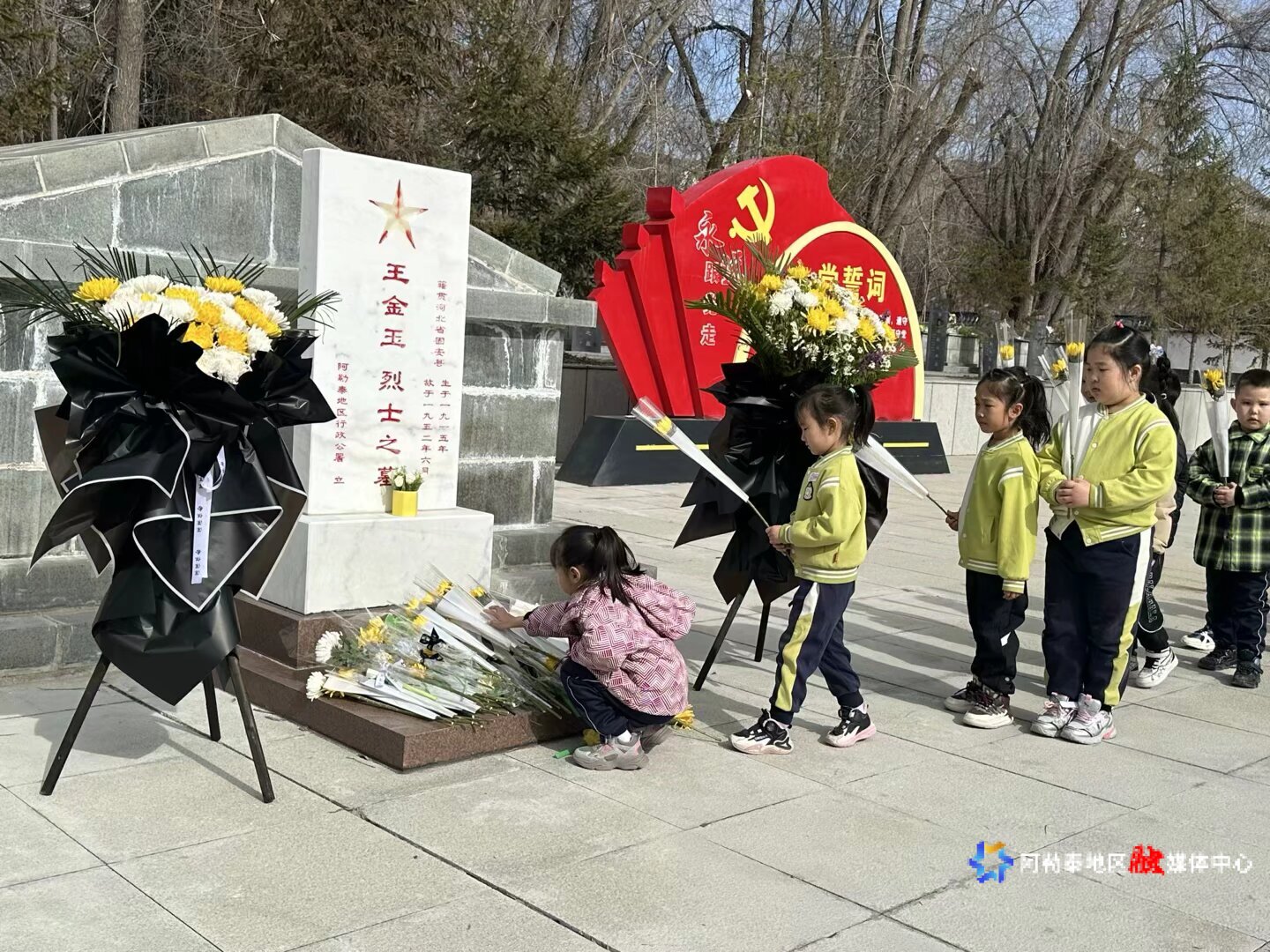 雪都嘟/阿勒泰地区融媒体中心(实习记者 娜迪亚·哈依拉提 通讯员 李琴)清明节前夕,阿勒泰市第一幼儿园、第三幼儿园联合博达幼儿园、蓝天幼儿园,组织师生前往阿勒泰地区烈士陵园开展祭扫活动。通过默哀、献花、唱国歌、宣讲英烈故事等形式,让孩子们在庄严的氛围中接受爱国主义教育,让红色基因浸润童心。教师们表示,将把英烈精神融入日常教学,引导孩子们铭记历史,珍惜幸福生活,争做新时代好少年。