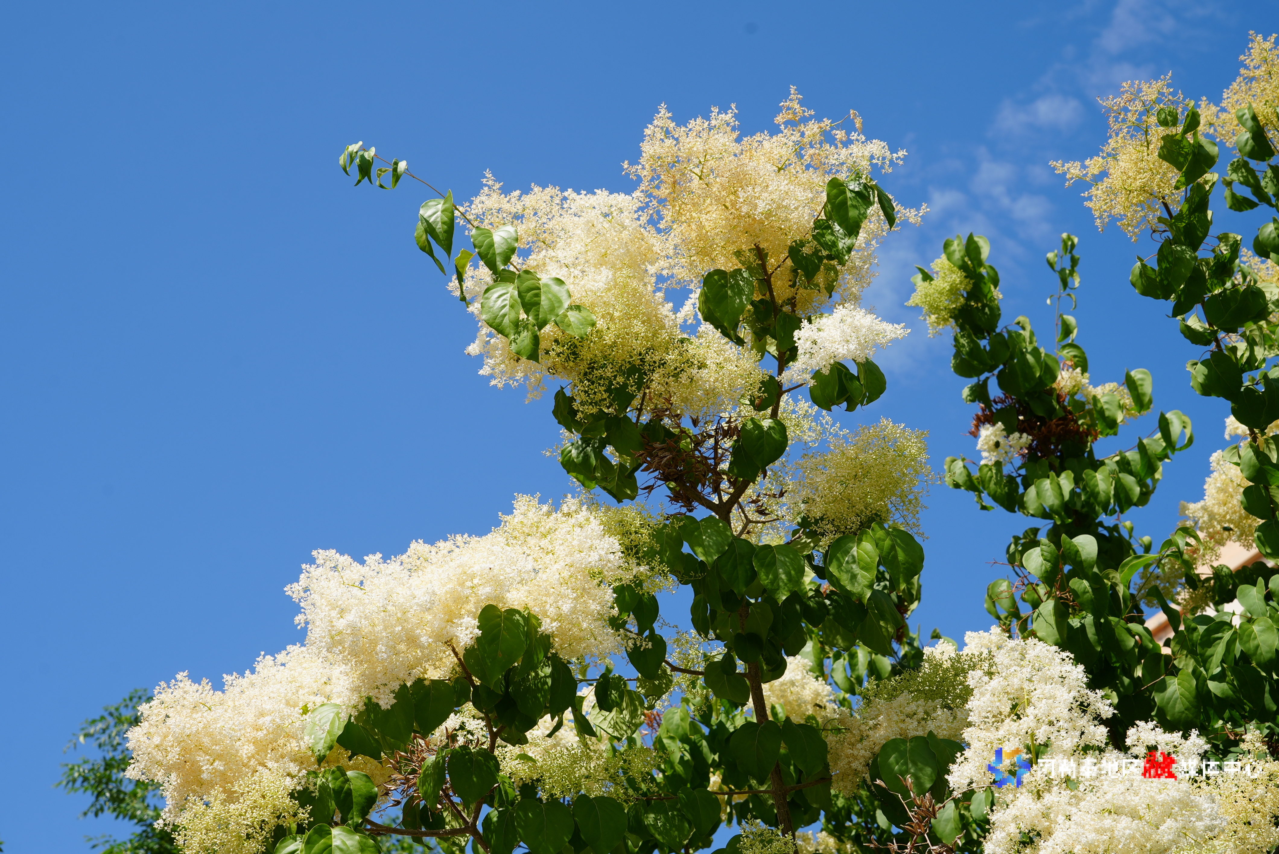 阿勒泰新闻网-阿勒泰地区融媒体中心(记者 代维利)6月18日,记者在阿勒泰市一居民小区内看到,一株暴马丁香花序如霞似锦,芬芳浓郁袭人,成为夏日独特景观。