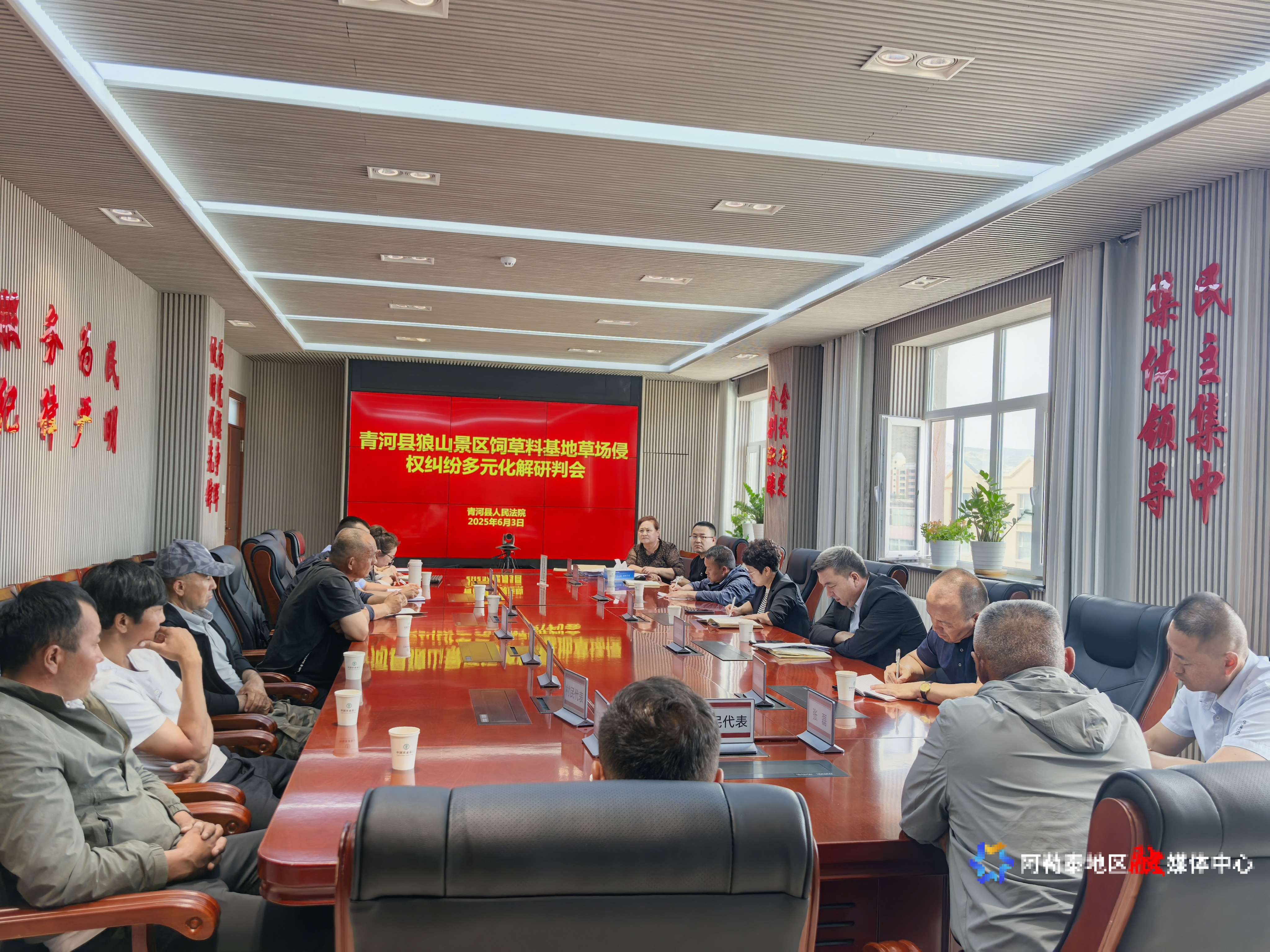 6月3日,青河县人民法院针对景区开发与草场资源使用中的侵权纠纷,组织县人大、县政协以及阿热勒托别镇人民政府、司法所、边境派出所、青河县遨游旅游开发投资有限责任公司、承包户及村民代表召开研判会。各方充分协商,成功化解因牧民牲畜管理不善进入狼山景区苜蓿地造成的经济损失纠纷。