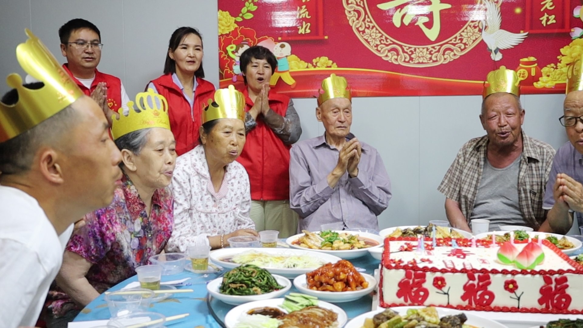 在地区金泰康养中心,阿勒泰市委社会工作部联合爱心商户为老人过集体生日。