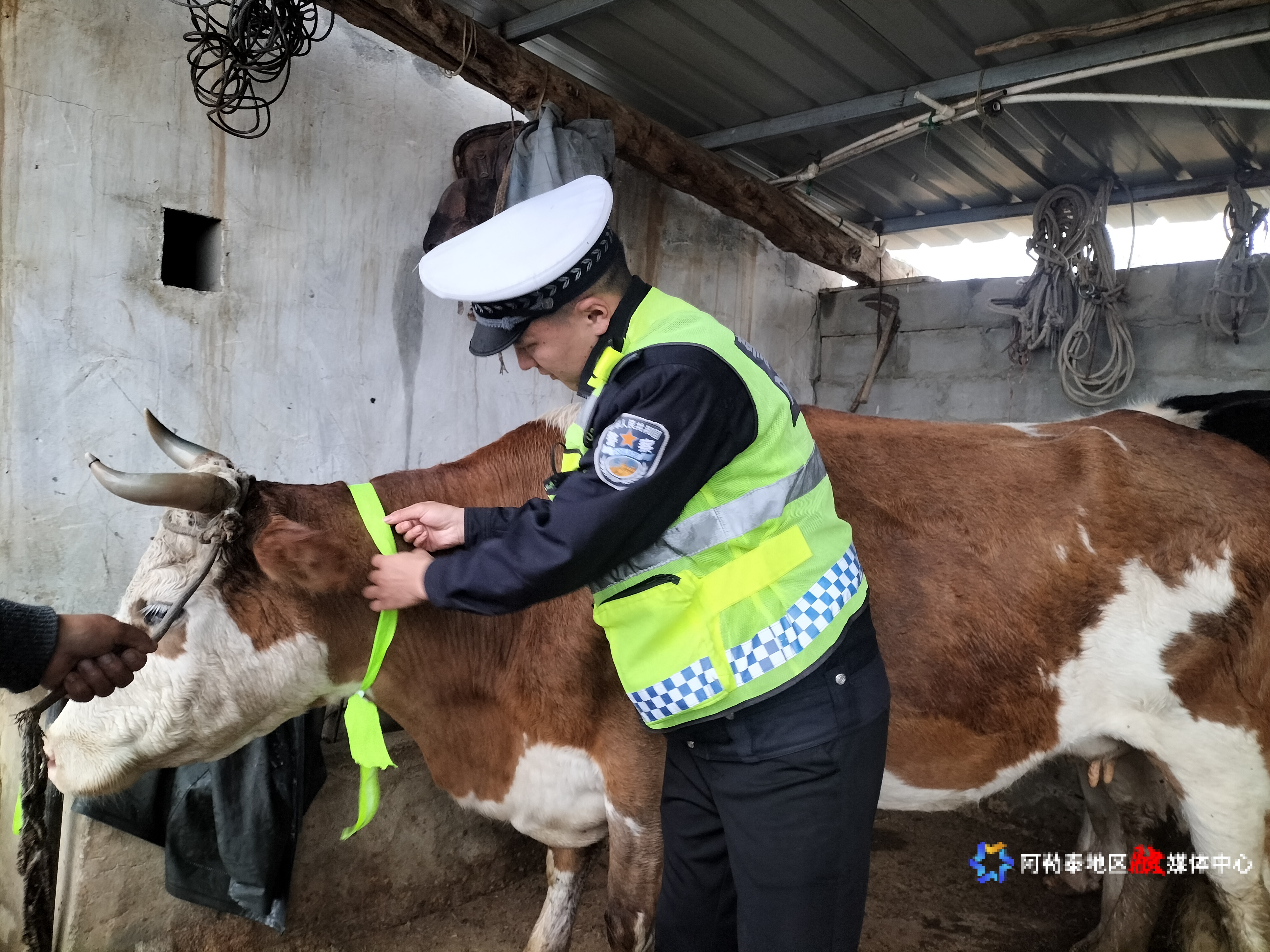 小反光带发挥大作用 阿勒泰交警为牧区牛羊系牢“安全带”