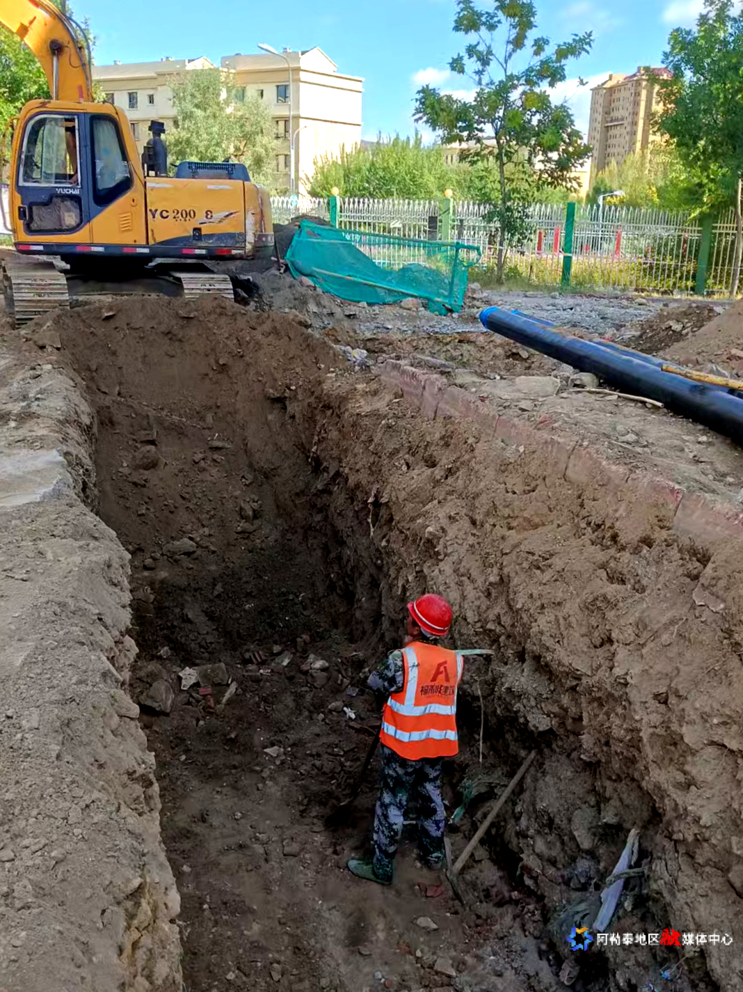 今年8月,阿勒泰市恰秀路街道恰秀南苑小区进行管沟开挖及铺设施工。(资料图)
