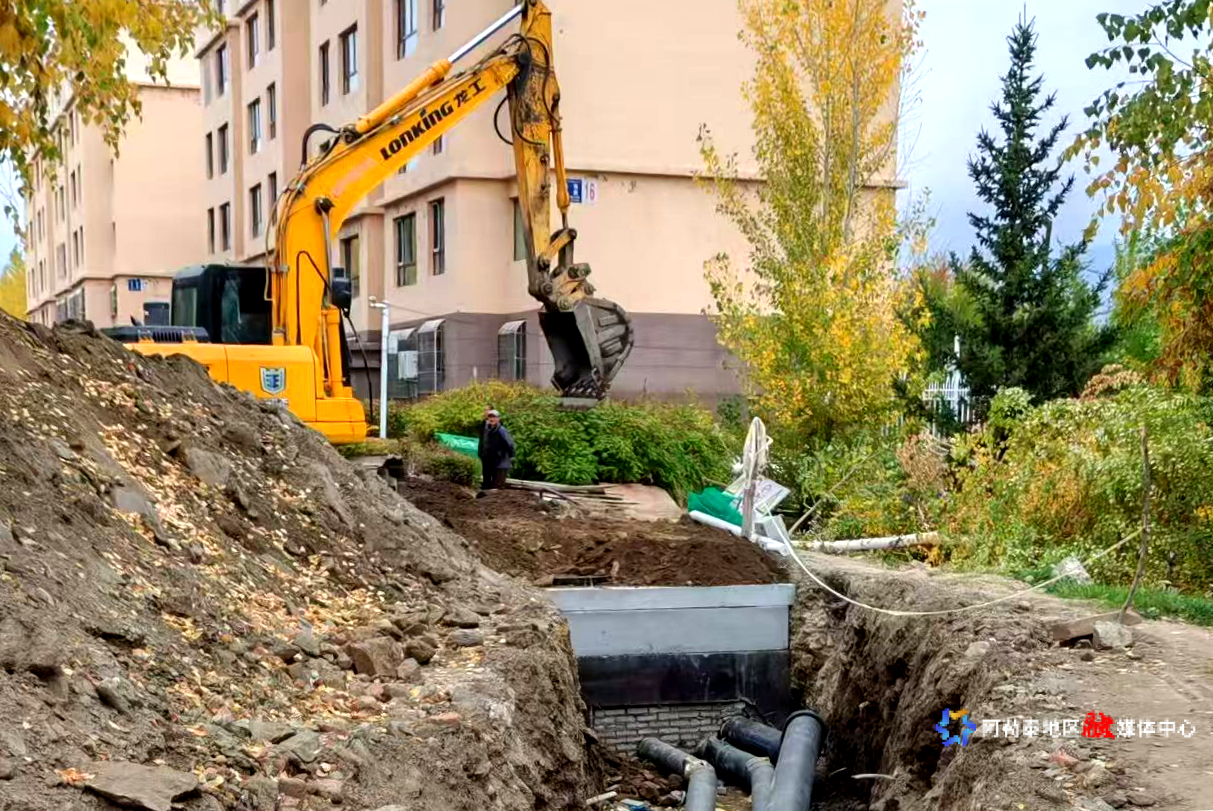 9月30日,阿勒泰市恰秀路街道恰秀北苑小区进行管沟开挖及铺设施工。(小区居民拍摄)