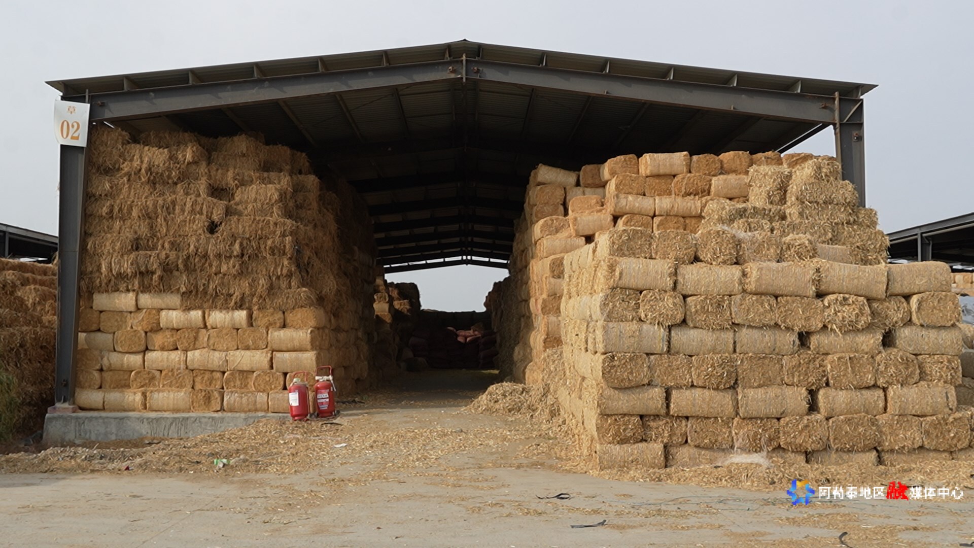 阿勒泰新闻网-阿勒泰地区融媒体中心(记者 张涛 通讯员 李怡然)深秋时节,气温渐寒,牧草冬储工作进入关键阶段。11月4日,记者走进阿勒泰市切尔克齐乡黑走马农牧业养殖专业合作社,眼前的景象充满生机:一捆捆牧草像小山丘般整齐堆叠,在阳光下泛着金灿灿的光泽;青贮窖里,新鲜的青贮饲料装填得满满当当,淡淡的青草香扑面而来。