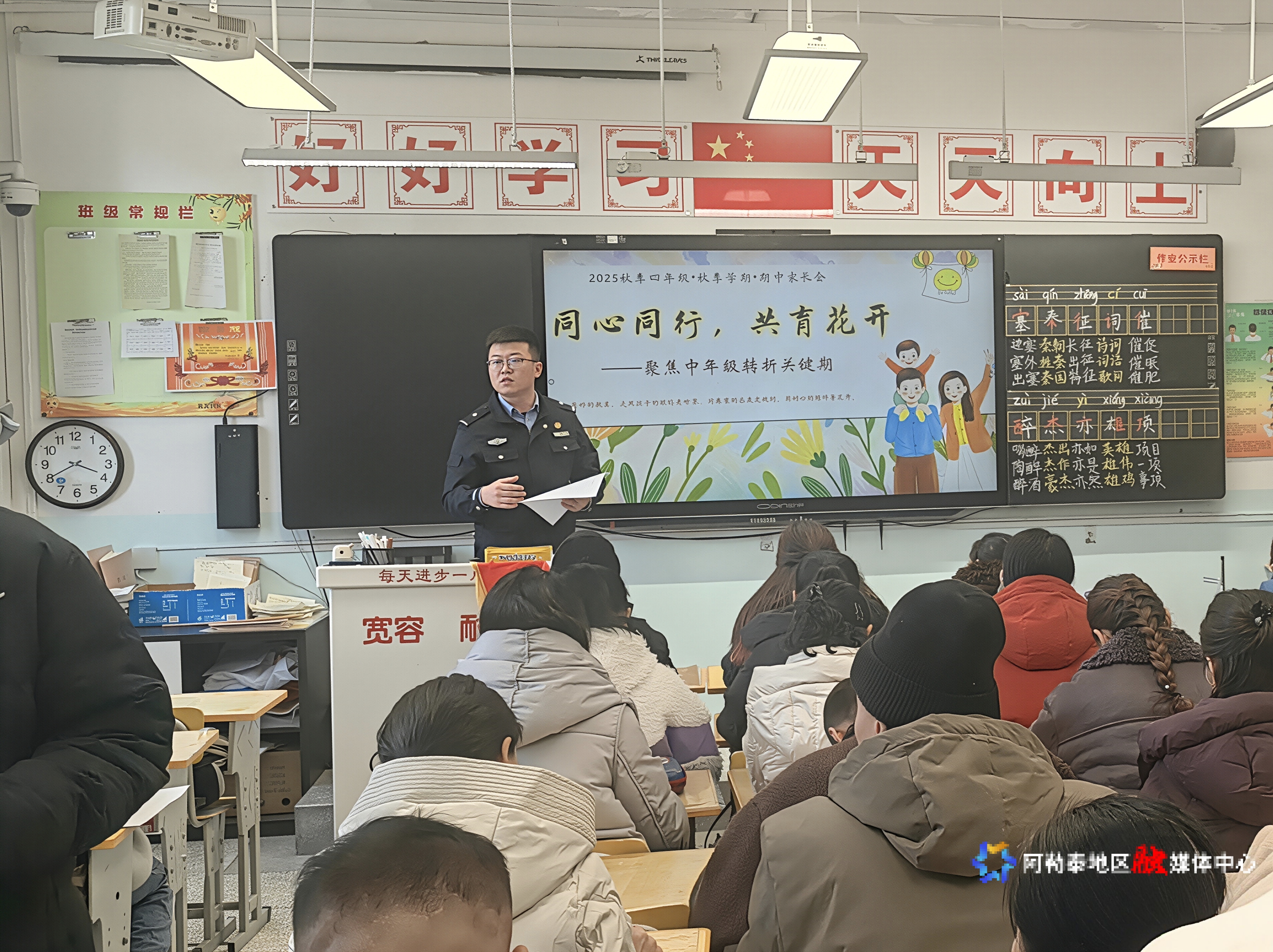 12月2日,青河县第一小学会议室内座无虚席,一场以“反校园欺凌”为主题的宪法宣传周家长会温馨开场。青河镇派出所民警、青河县第一小学法治副校长付向阳以“校园欺凌绝非‘小打小闹’”为切入点,强调校园欺凌不仅伤害学生身心健康,还触碰法律红线,而家长的早期干预是守护孩子的“第一道防线”。