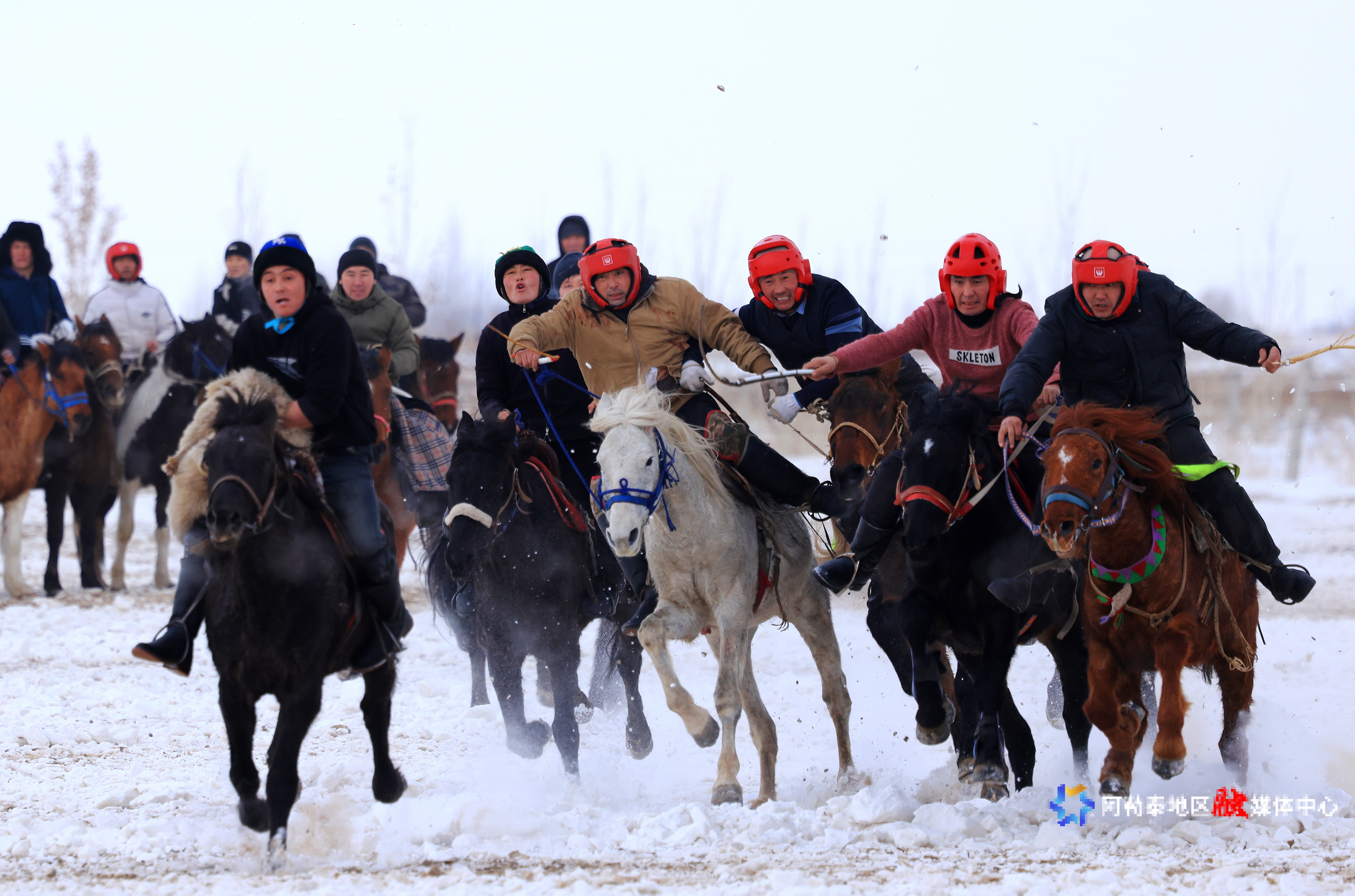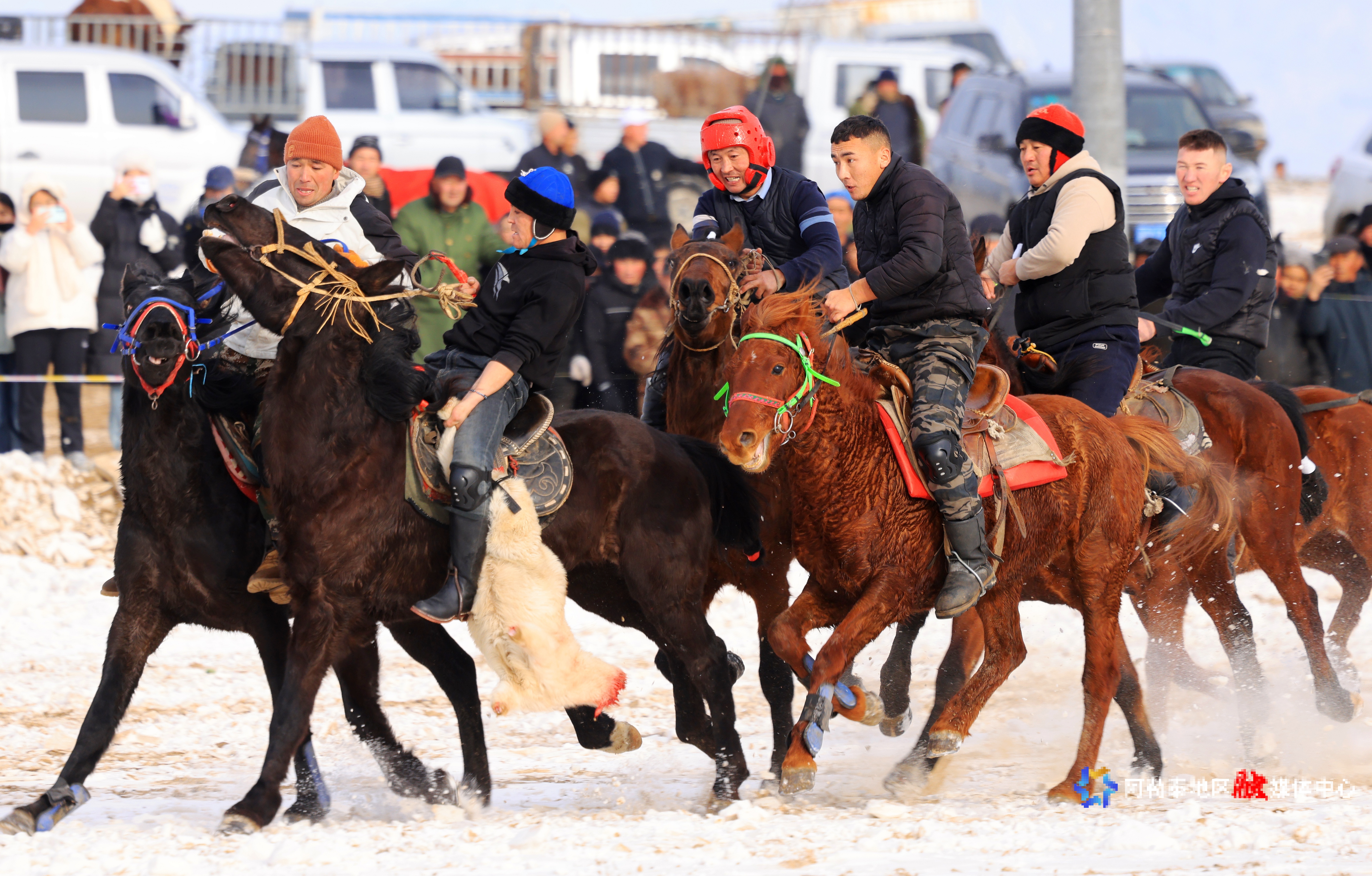 12月14日,阿勒泰市切尔克齐乡举行第三届“冰雪骑缘 以梦为马 不负韶华”冬季运动会,农牧民正在参与刁羊比赛。记者阿尔达克·拜斯汗摄