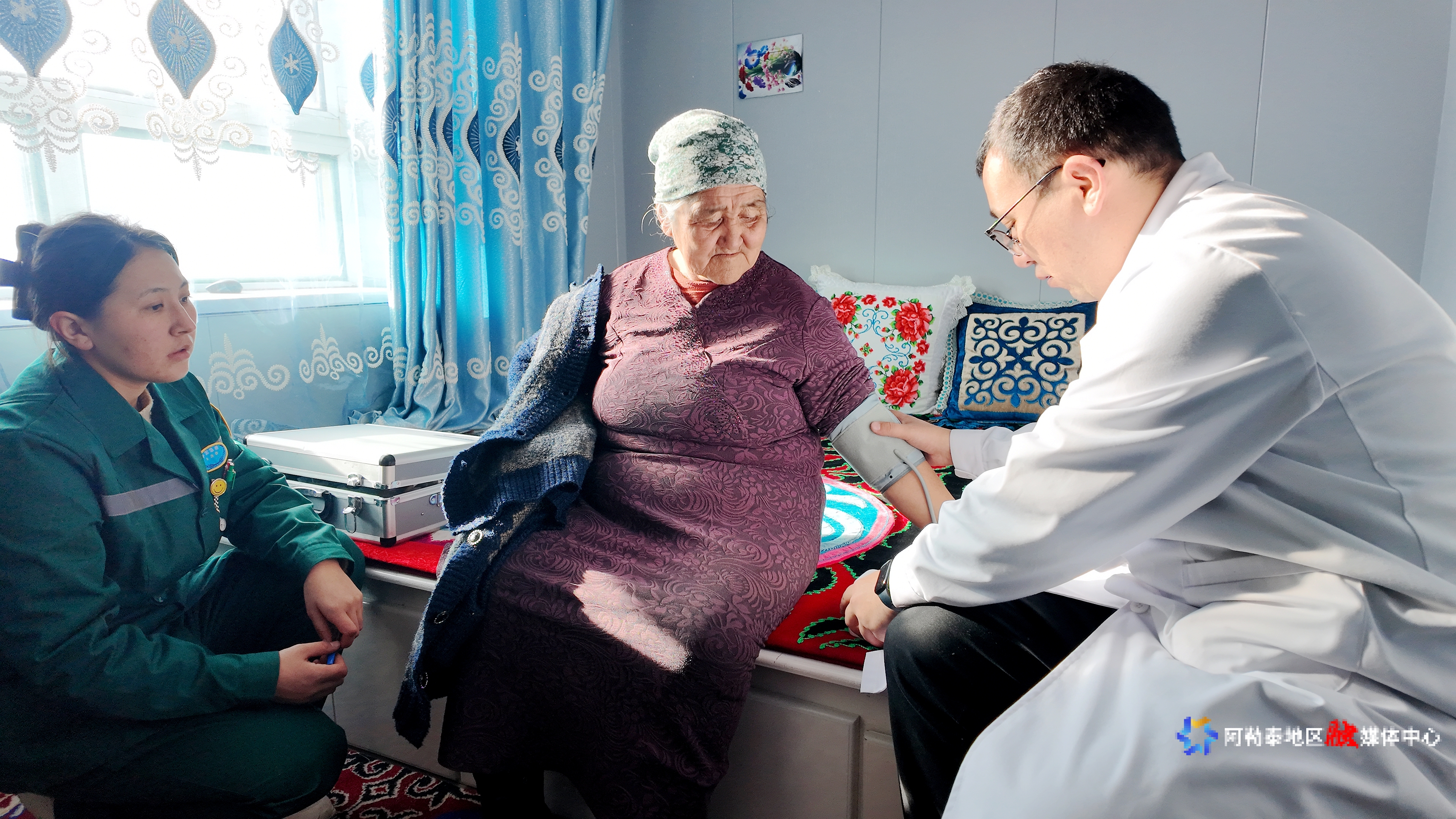马得尼亚提·恰力甫汗是阿勒斯别克·谢尔亚孜的邻居,他的爱人前期因交通事故卧病在床,当天,吐尔洪乡中心卫生院的医护人员为其提供了血压测量、吸氧等护理服务。吐尔洪乡中心卫生院医生木合塔尔·哈依拉提说:“寒潮期间,我们为行动不便和慢性病患者提供上门服务,减少他们在低温下外出的不便?!?/p>