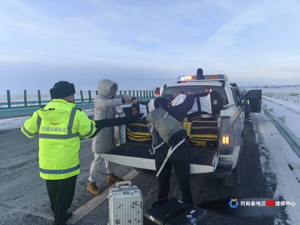 当时天色渐暗,气温降至零下20℃,游客的手机信号不稳定,救援车辆需数小时才能抵达。见状,执法人员立即启动应急救助:把游客转移至执法车内取暖,协助搬运行李,并驱车近百公里,把一行人安全送至最近的恰库尔图镇妥善安置。后续,安排专人与救援单位保持联络,直至故障车辆被安全拖离。