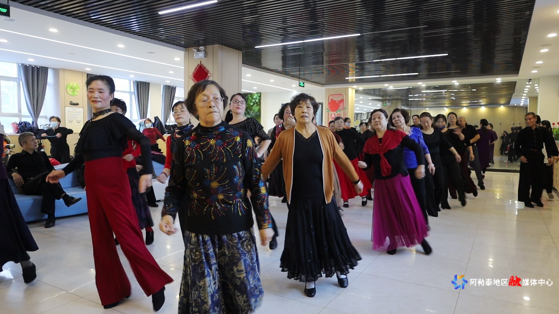 阿勒泰市金山路街道文化路社区党群服务中心内,舞蹈队身着轻薄舞服翩翩起舞,尽显冬日活力。