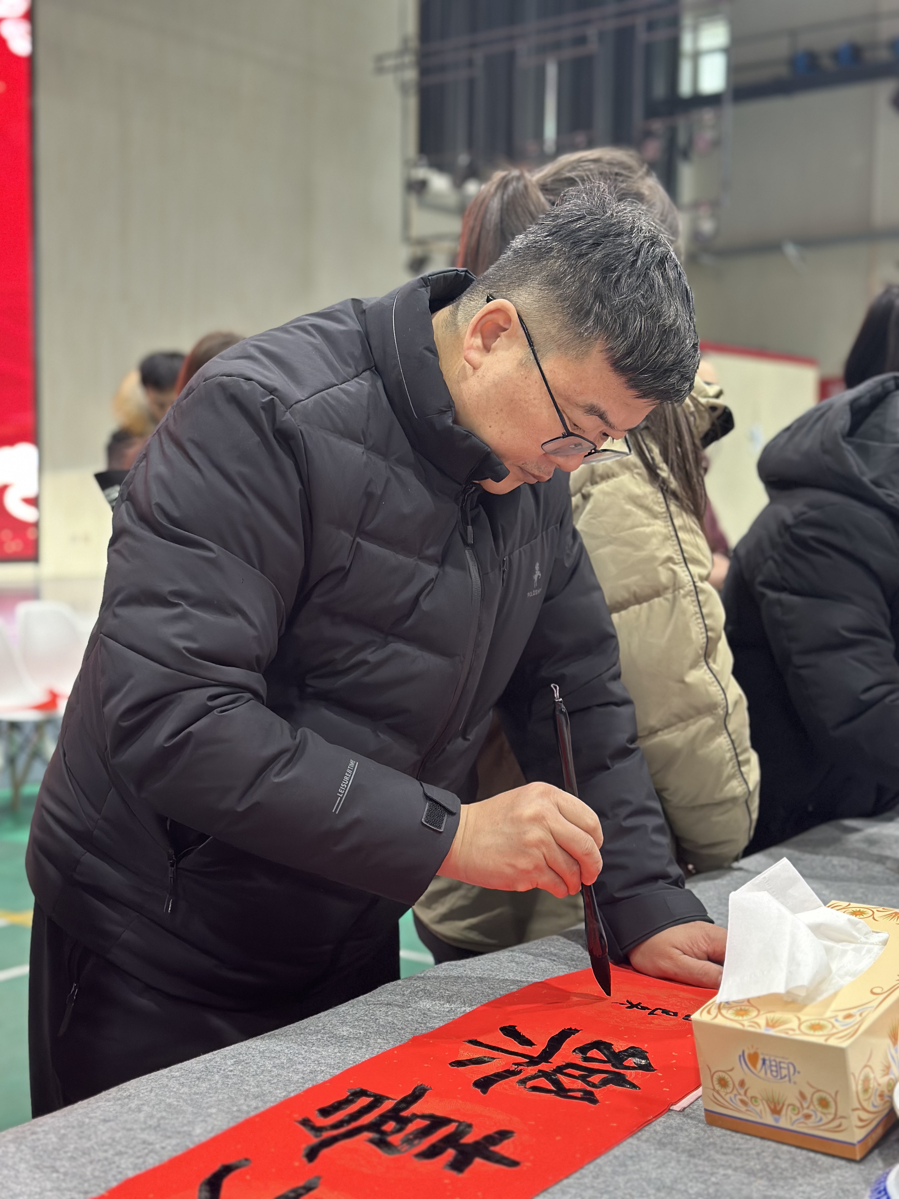 活动现场,书法家们挥毫泼墨,一副副笔力遒劲的春联、一张张寓意祥和的“?!弊衷救恢缴?;剪纸艺术家巧手翻飞,创作出灵动精美的作品?;鸷斓拇毫ⅰ案!弊钟爰糁浇幌嗷杂常痴兆攀ι堑男α?,成为校园里一道充满文化底蕴与温情暖意的风景。