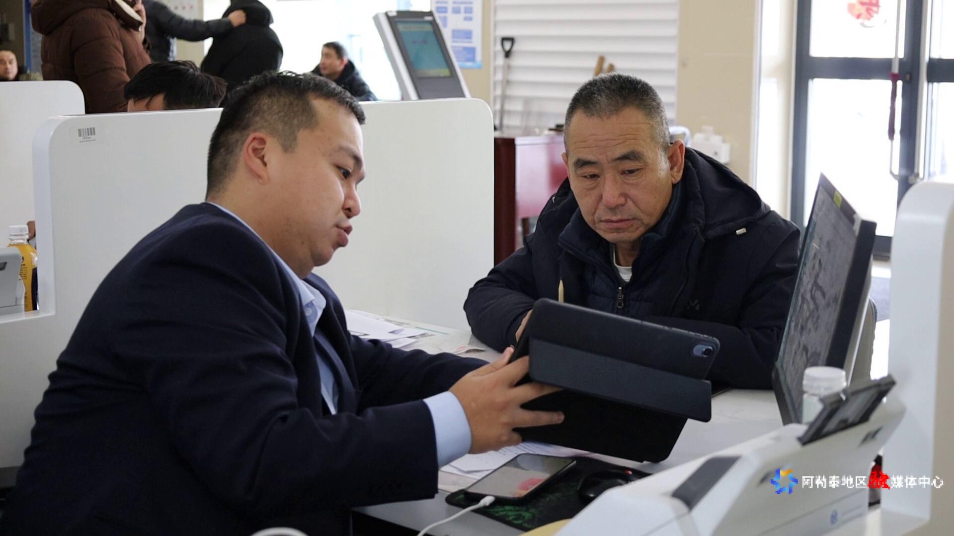 1月26日,在新疆农商银行阿勒泰市支行服务大厅,阿苇滩镇青格劳村村民潘丽建正在办理小微e贷业务。该产品年利率低至3.0%,最高额度可达100万元,能有效降低融资成本、满足客户大额需求。“这款贷款手续简单,到账快、额度大、利率低。期盼2026年有个好收成?!迸死鼋ㄋ怠?/p>