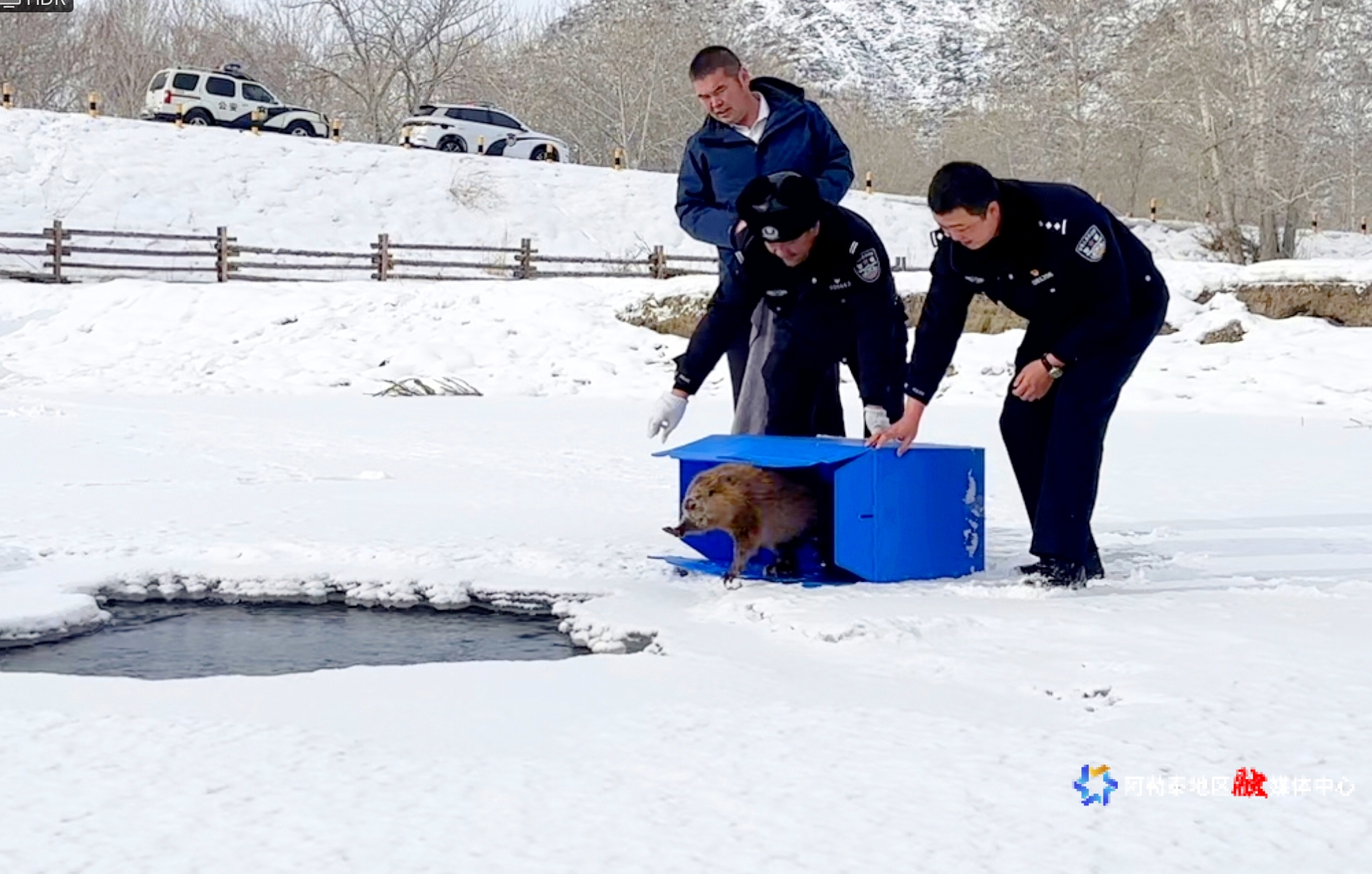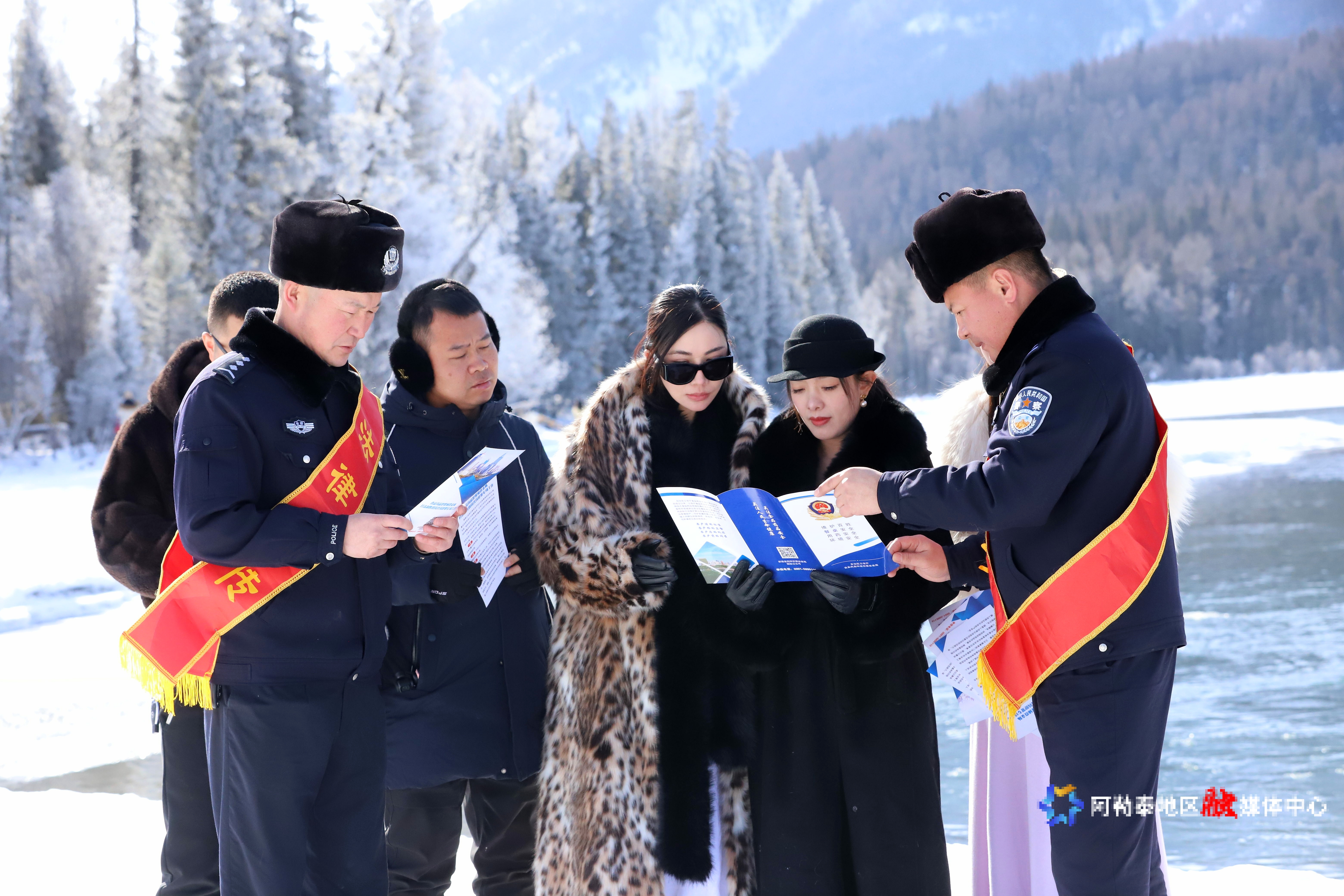 1月25日,阿勒泰市公安局阿拉哈克镇派出所民警在科克苏湿地国家级自然?;で共窖补ぷ鳌Mㄑ对?韩宏亮 摄