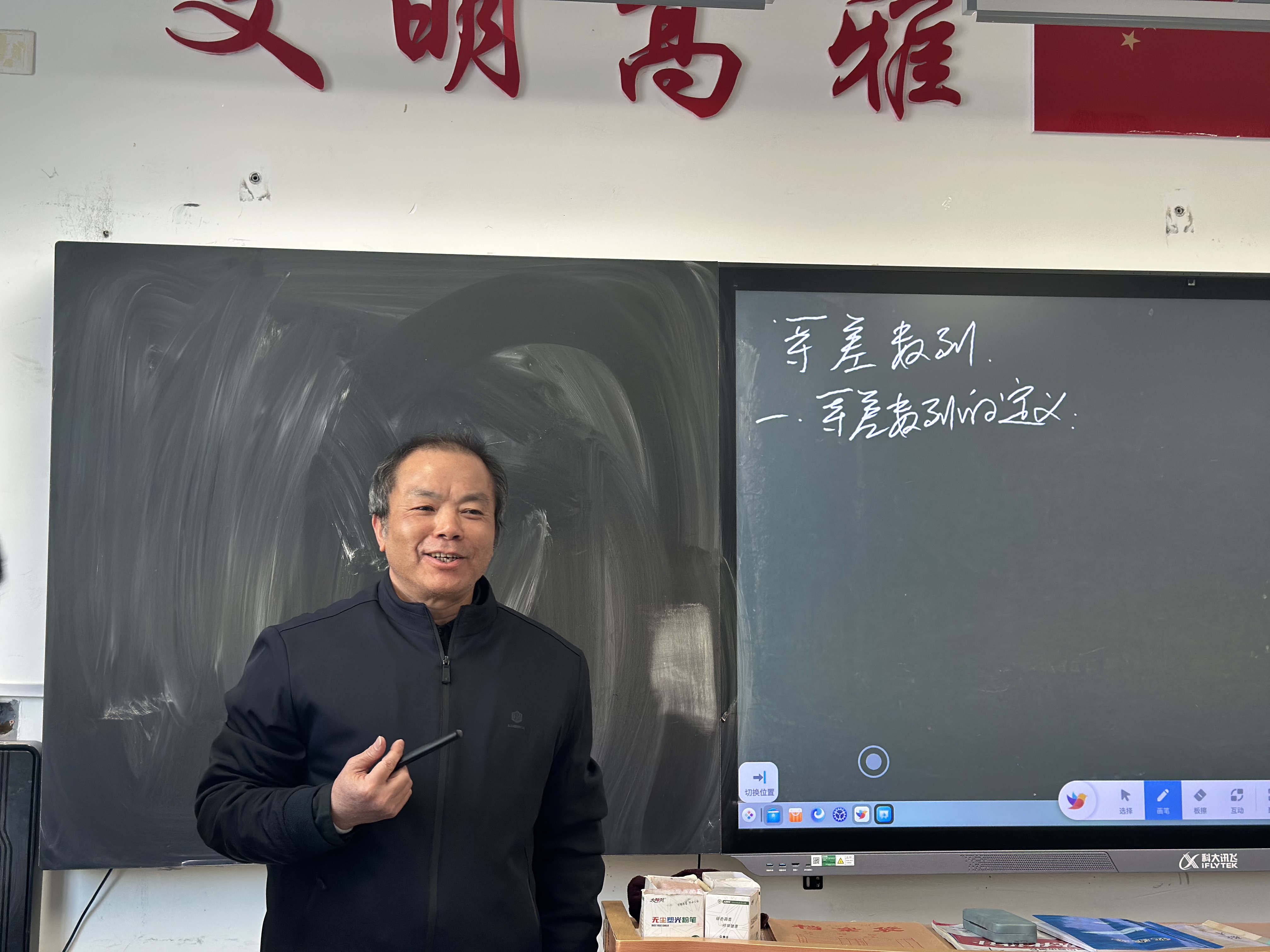 来到地区二中后,他主动承担晚自习管理工作。每天放学后,教室里总能看到他答疑解惑、鼓励学生、与青年教师交流的身影。数学教研活动中,他全程参与,从探究课设计到青年教师磨课,毫无保留地分享自己的教学积淀,拿着教案逐字逐句推敲,手把手指导青年教师优化教学环节。