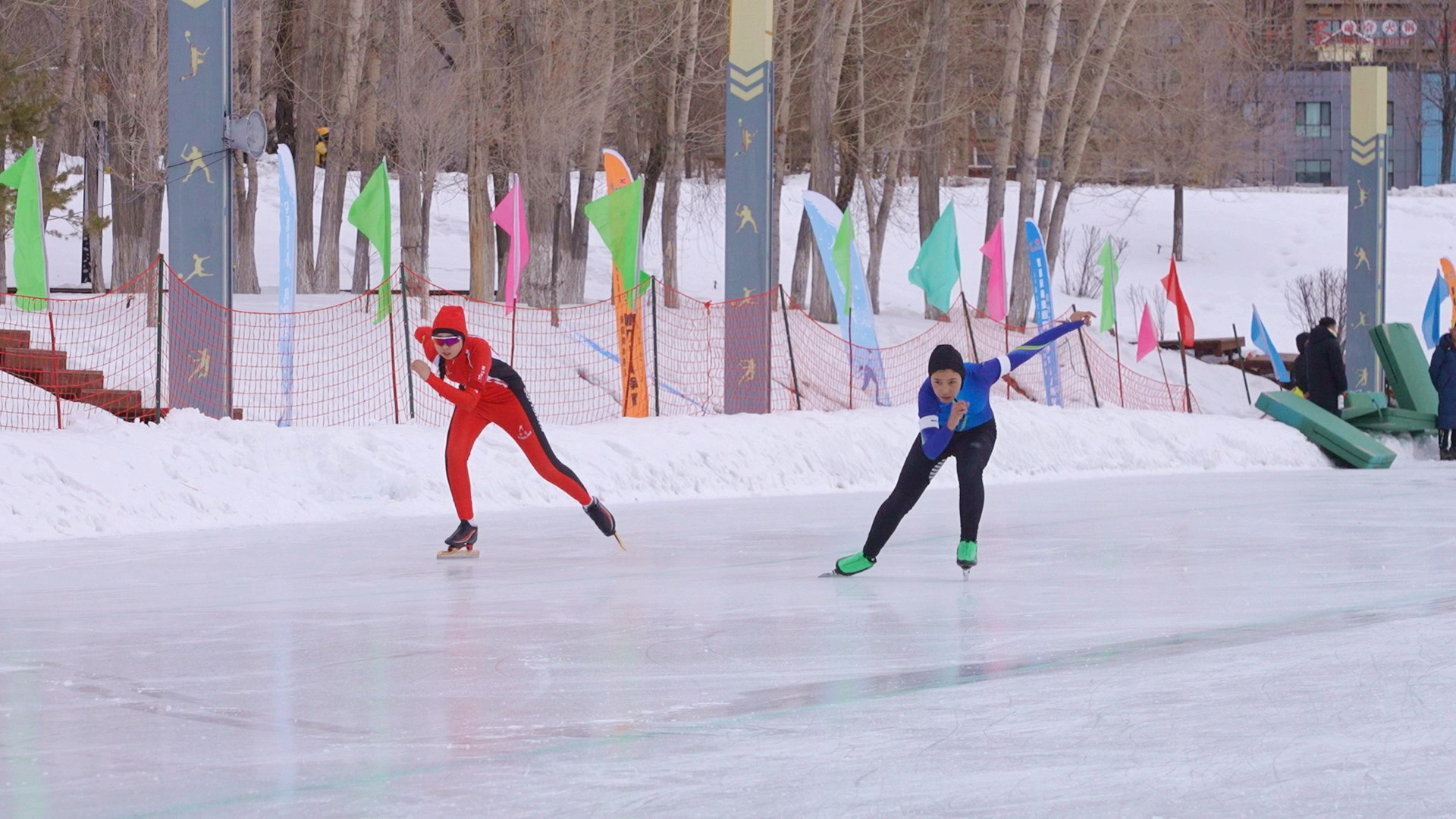 与此同时,在阿勒泰全季体育公园举行的速度滑冰比赛同样精彩纷呈。小选手们身着专业装备,脚踩冰刀奋勇争先,你追我赶间不甘示弱,矫健的身影在光滑的冰面上快速掠过,划出一道道灵动的弧线,成为冰场上最耀眼的风景。