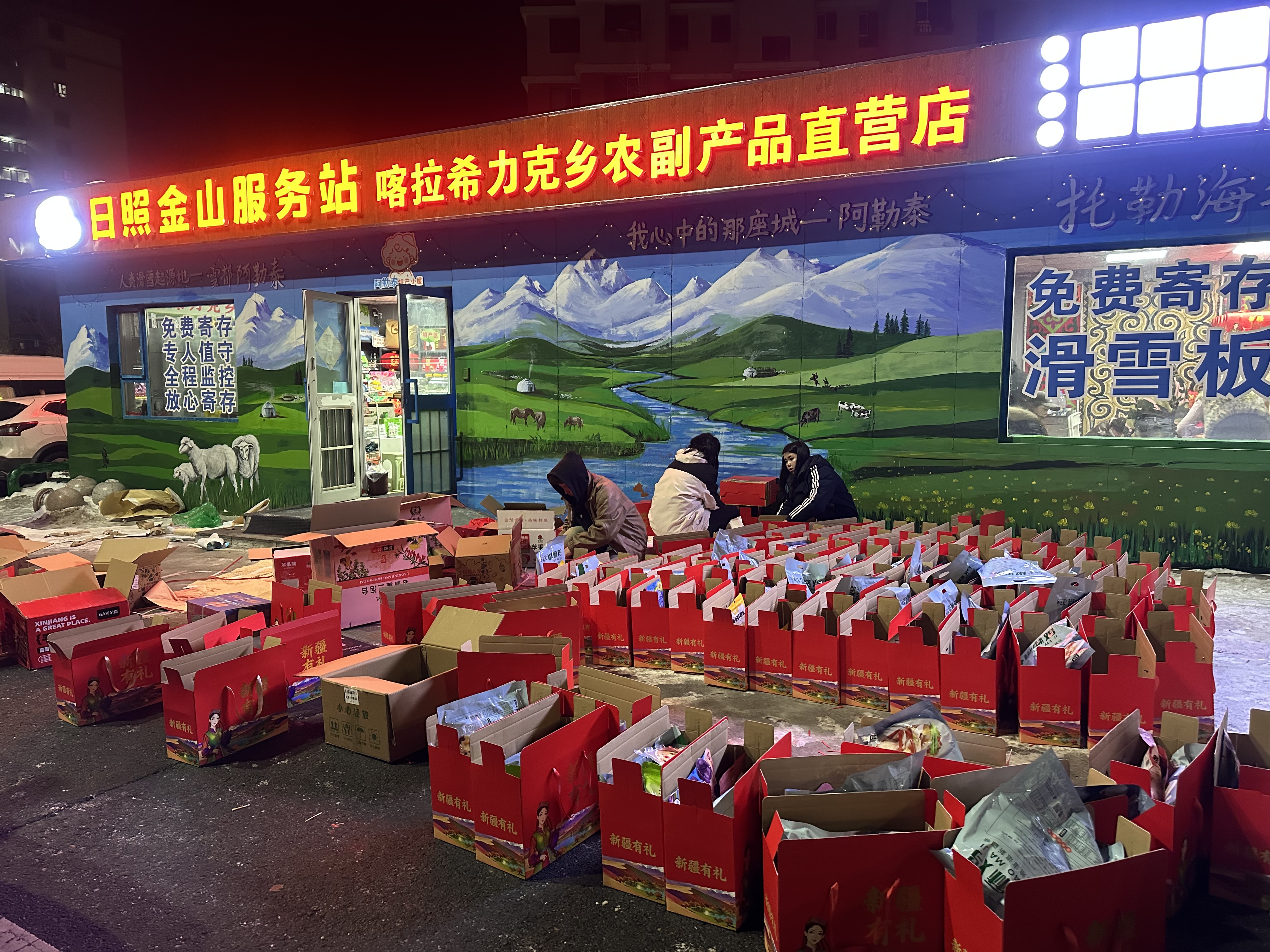 喀拉希力克乡“日照金山”服务站特产礼盒销售火爆。通讯员 米丽古丽·艾尼瓦尔 摄