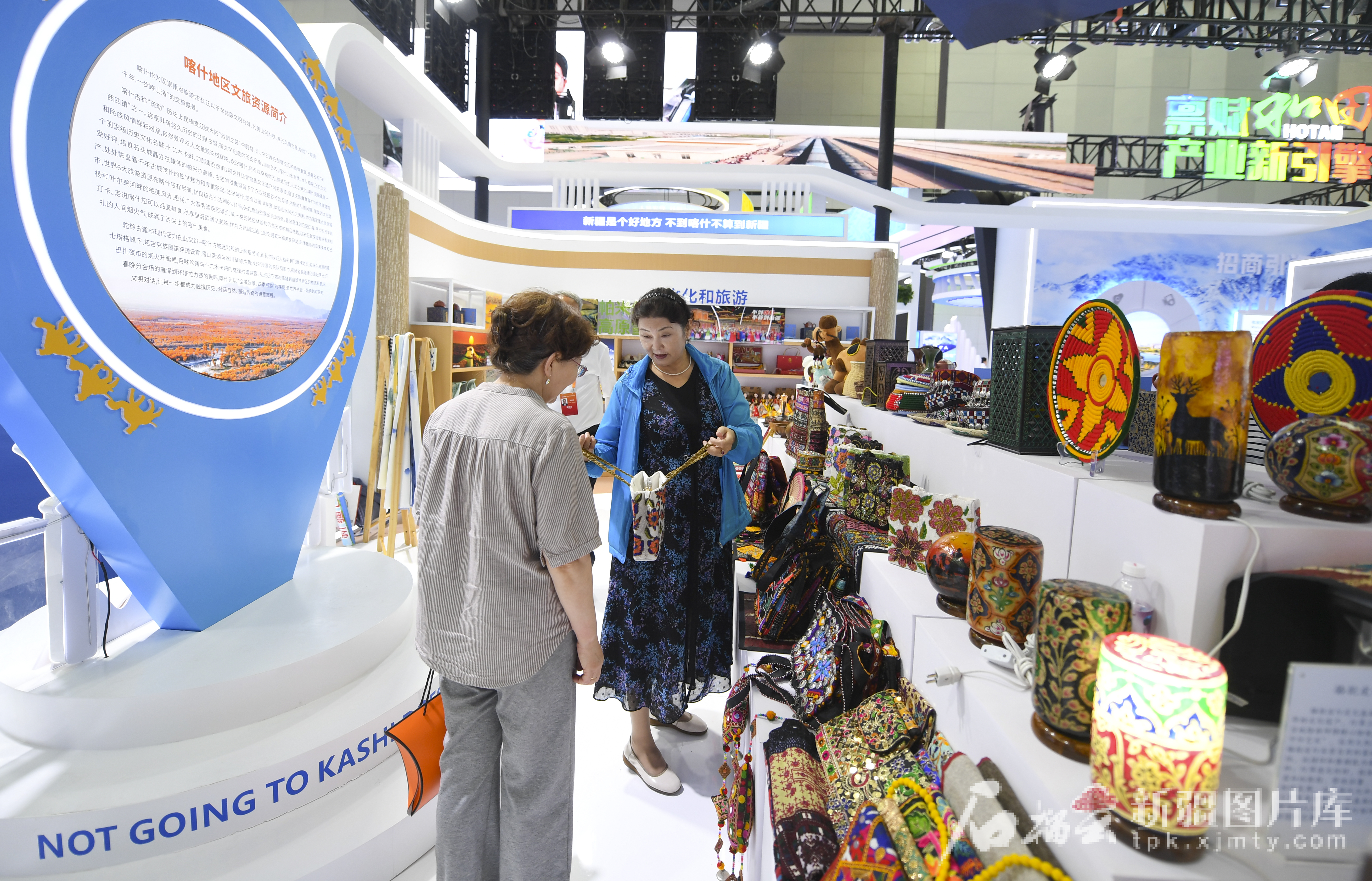 参观者在喀什展位上参观民族手工艺品。
