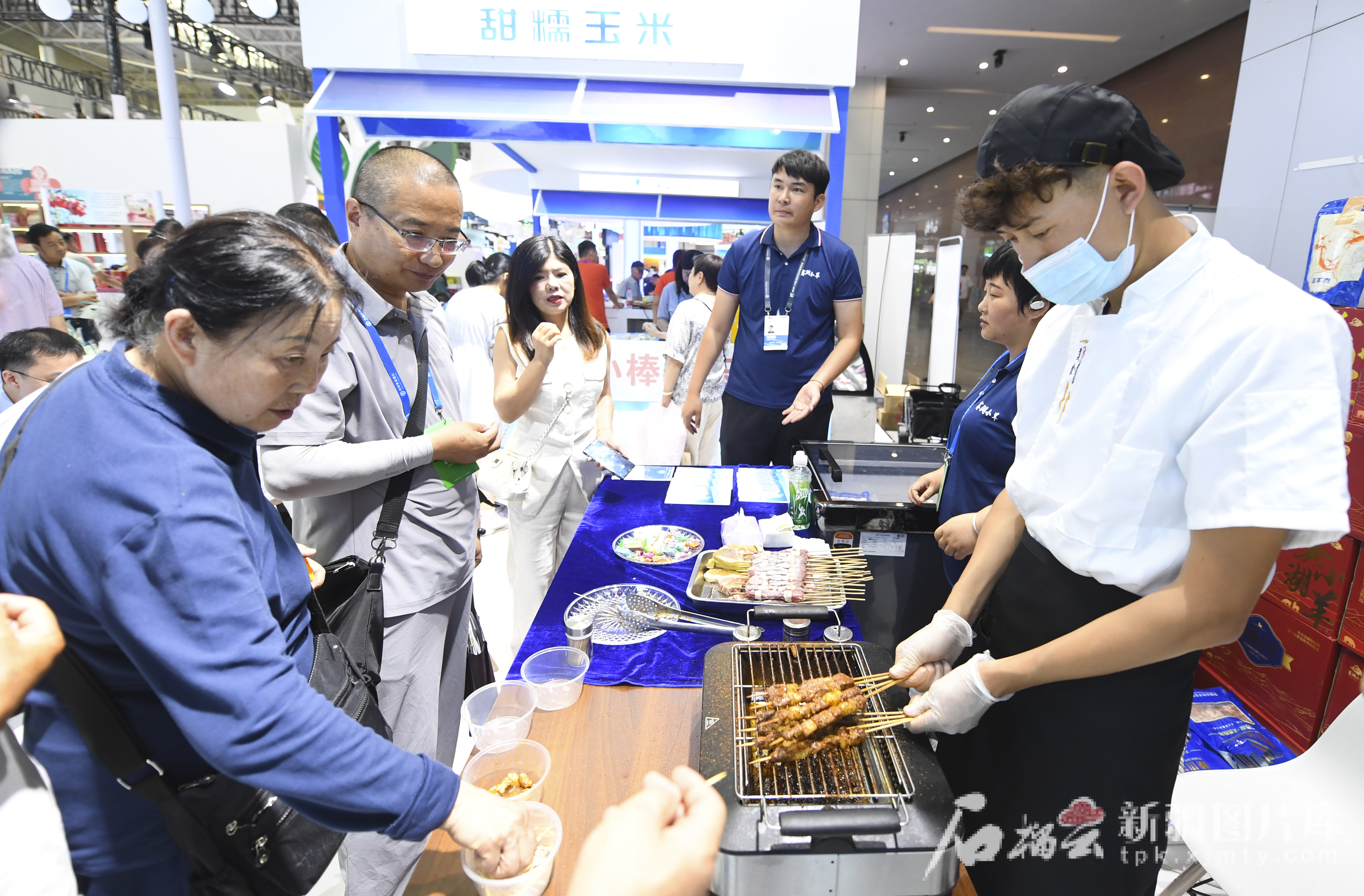 参观者在博尔塔拉蒙古自治州展位品尝有机羊肉。