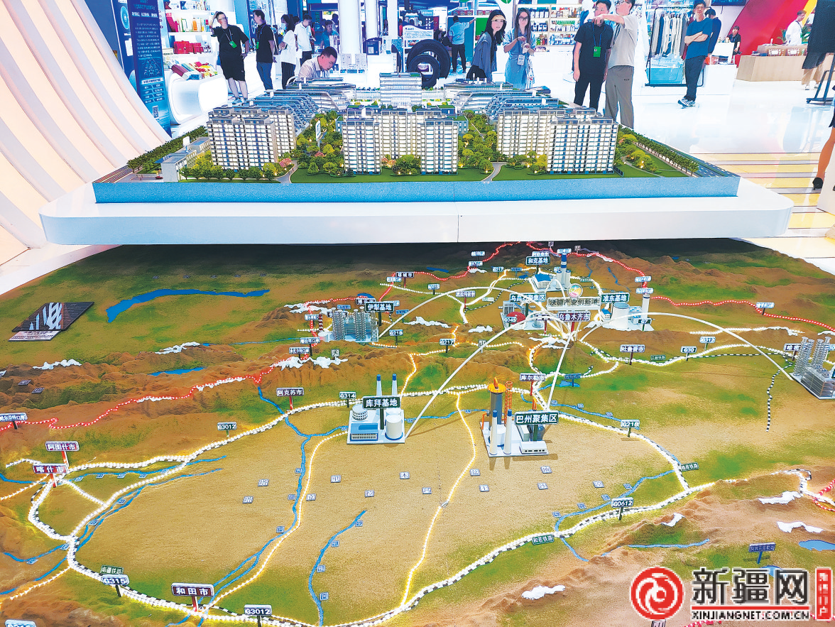 在乌鲁木齐展馆,新业集团打造的沃疆产业创新港的沙盘吸引了来往客商关注。 (记者唐红梅摄)