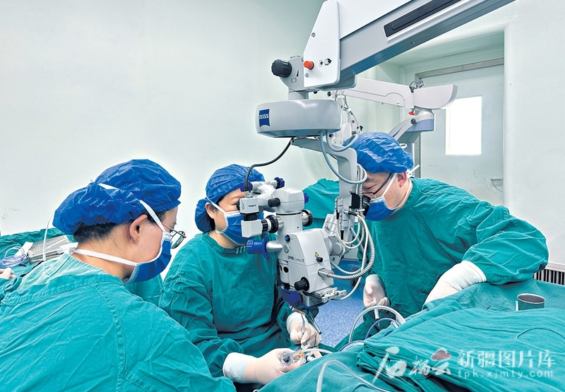 山西援疆医生完成昌吉州首例用患者原有的脱位人工晶状体进行内固定手术(2024年5月23日摄)。该手术切口小、恢复快,减轻了患者的负担。图片由山西援疆前指提供