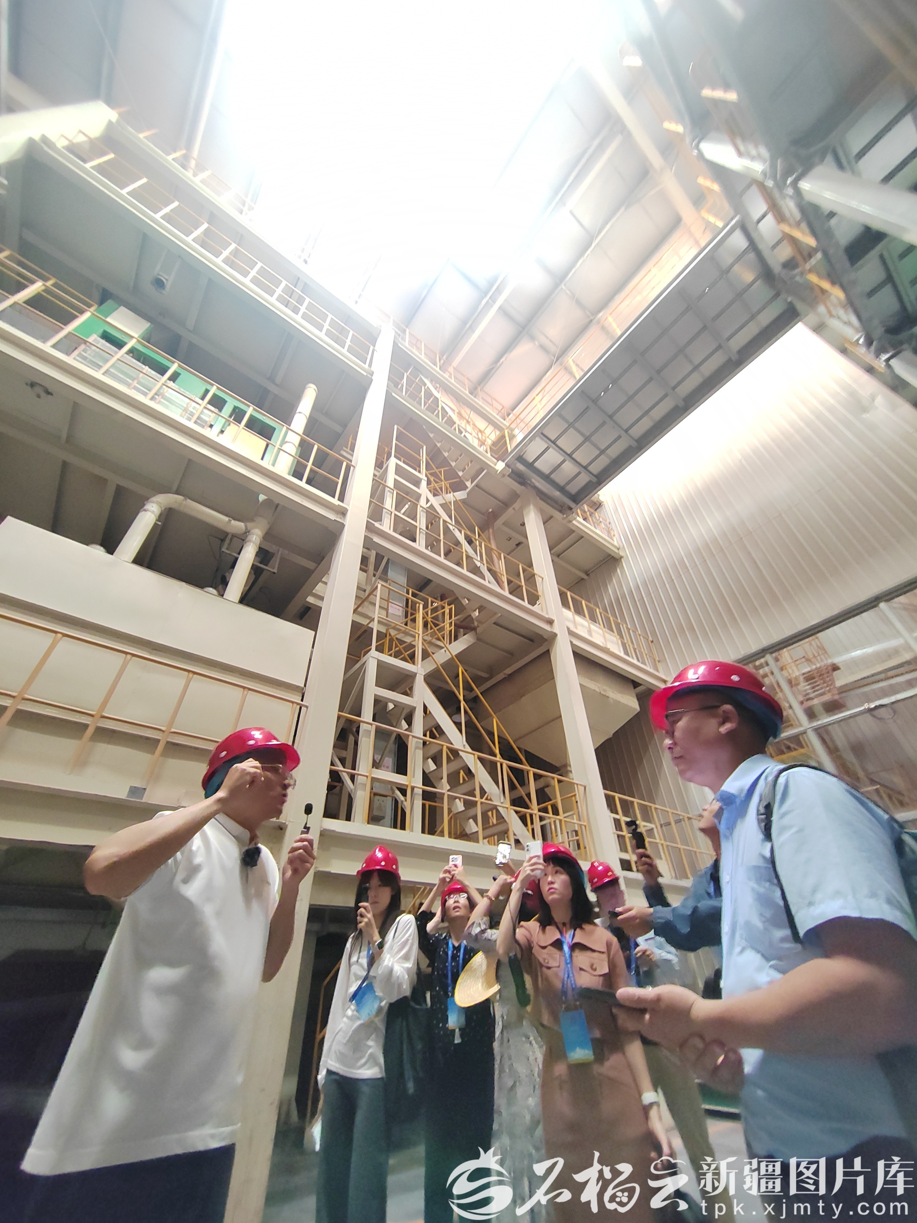 9月10日,工作人员带领“砥砺奋进七十载 天山南北谱华章”大型集中采访活动采访团一行参观生产加工区。