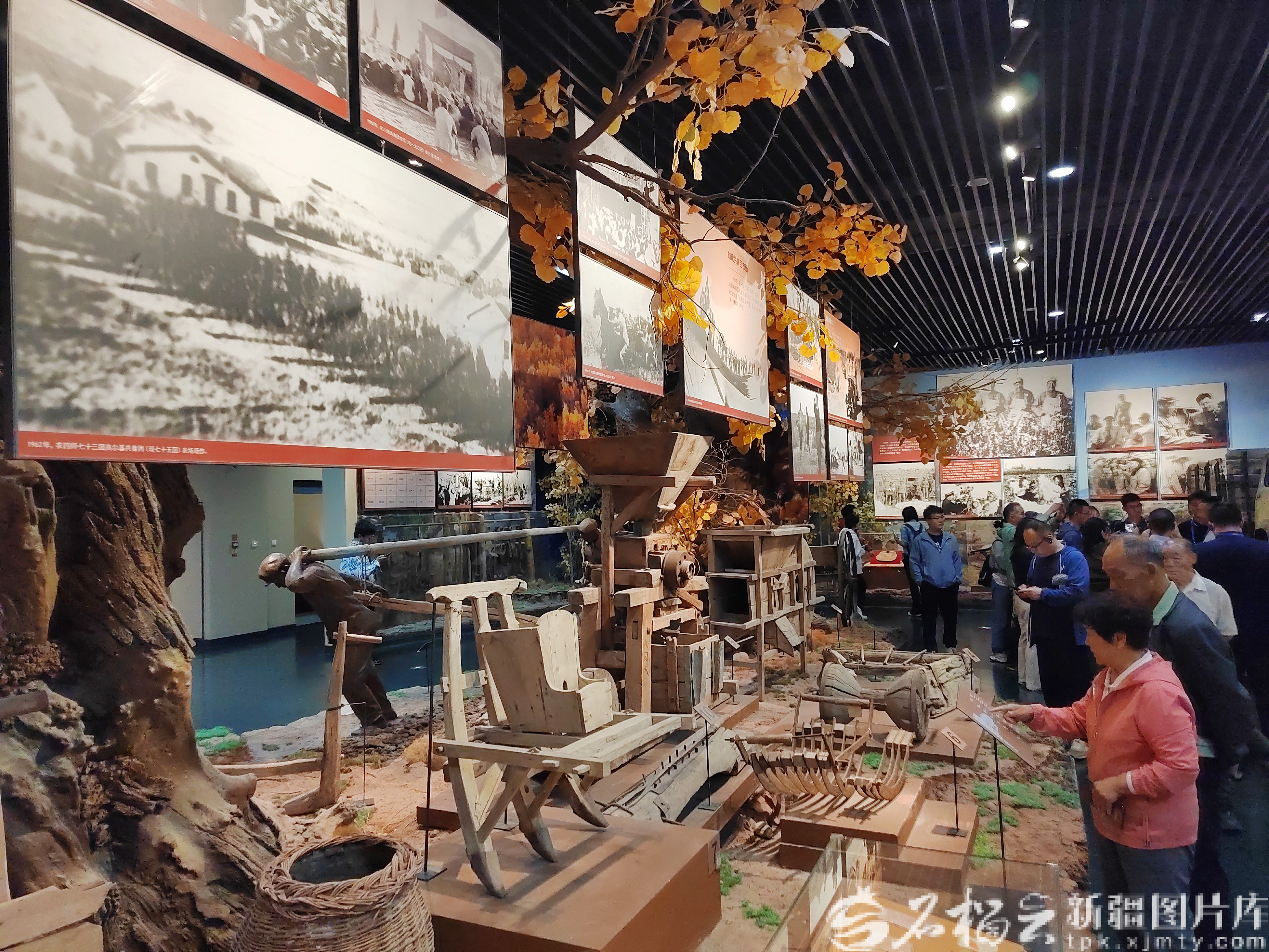 9月11日,采访团一行在新疆兵团军垦博物馆参观。