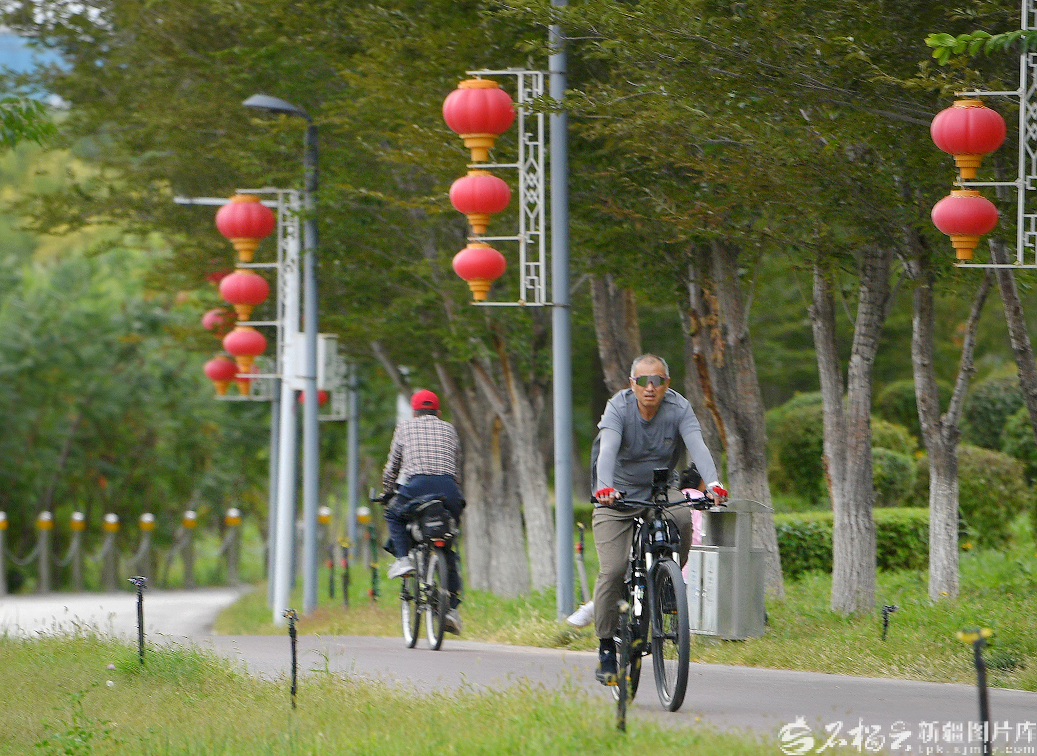 9月10日,市民在庭州生态绿谷骑行。