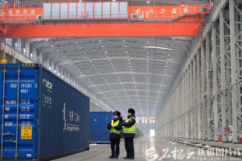 1月7日,阿拉山口海关关员对中欧(中亚)班列开展监管作业。潘嘉阳摄
