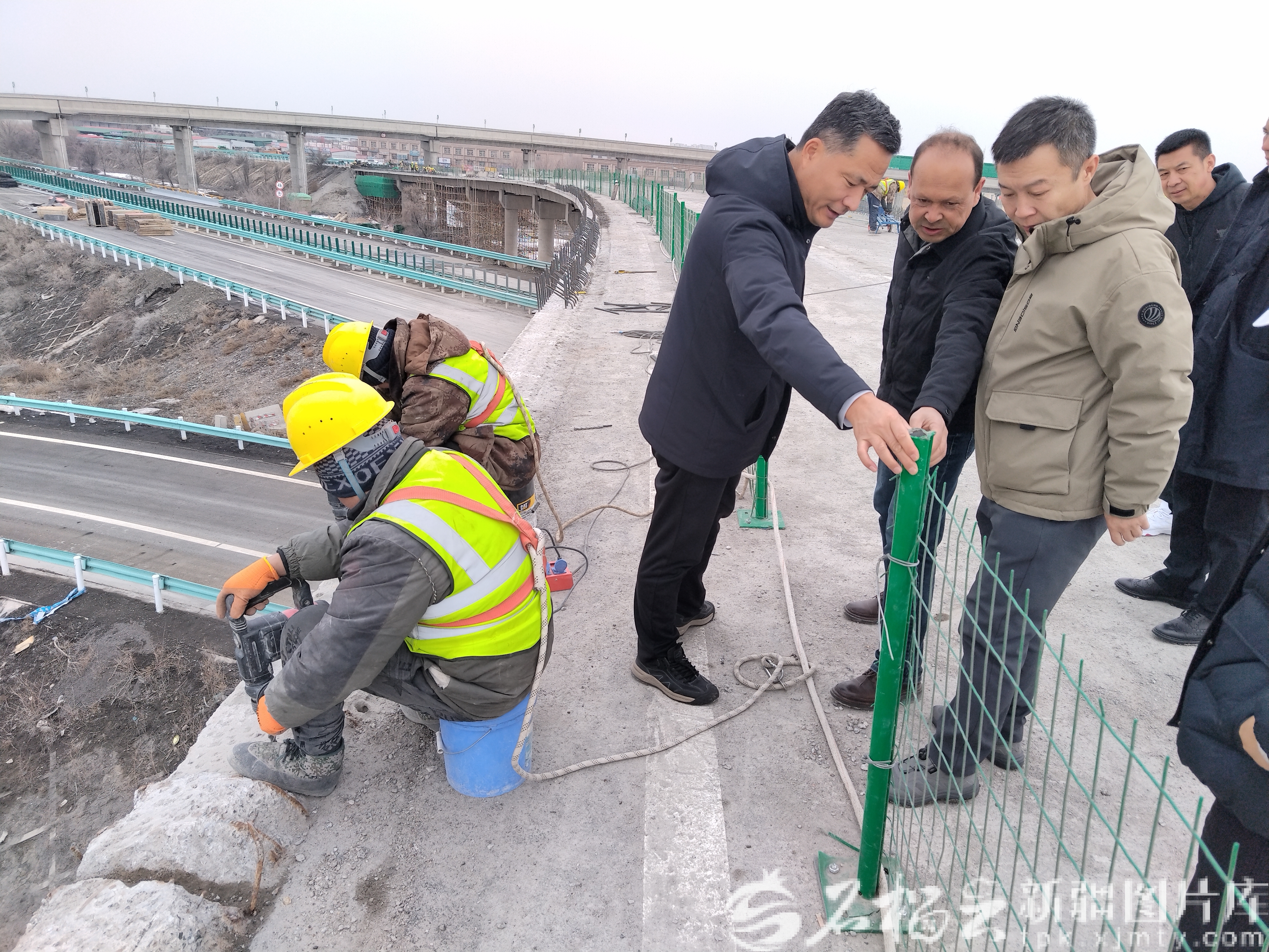 2025年春季,马连营(左三)在小地窝堡立交桥调研市政设施。本人供图