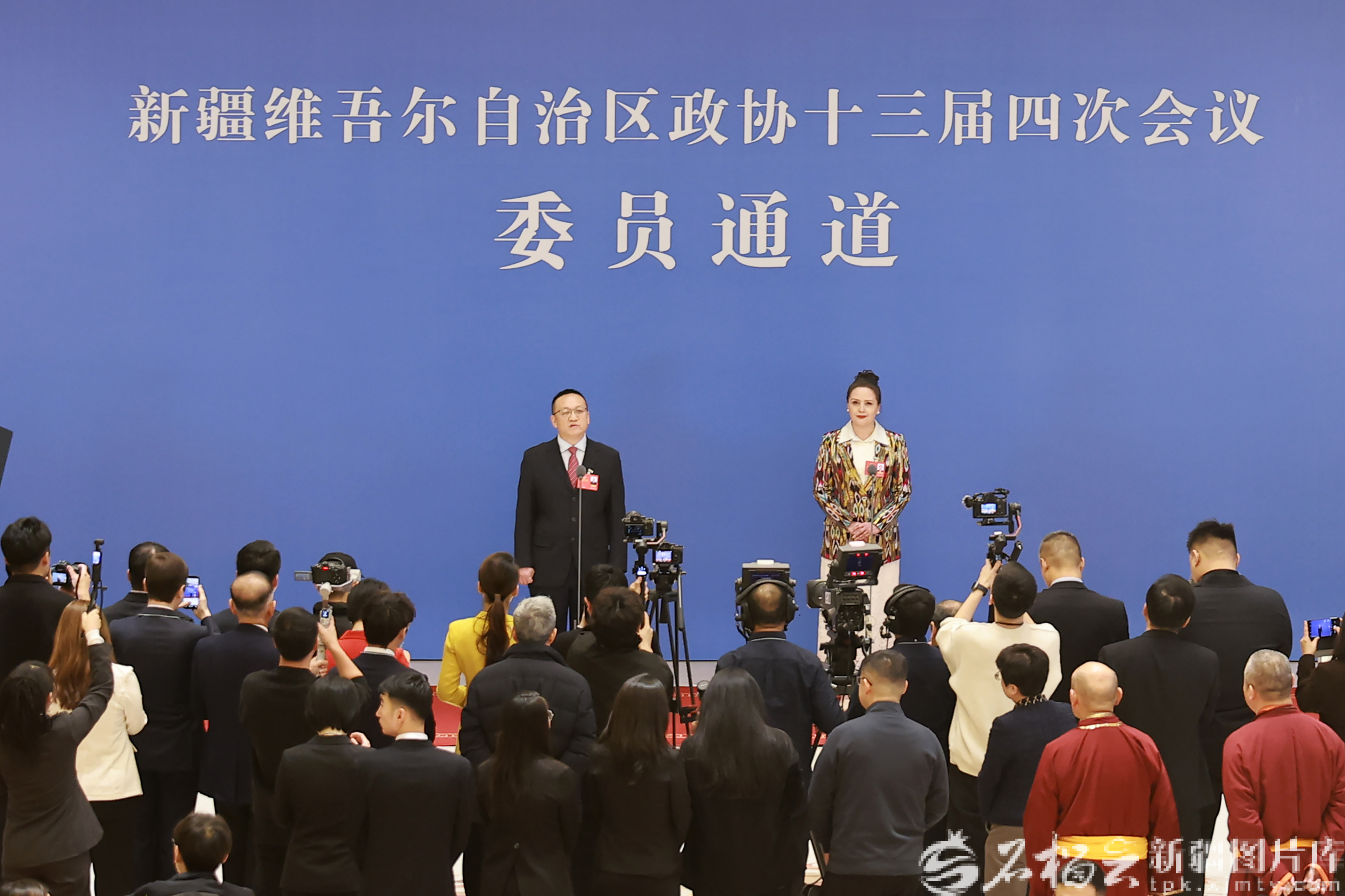 1月26日,自治区政协十三届四次会议“委员通道”集体采访活动现场。石榴云/新疆日报记者 邹懿摄