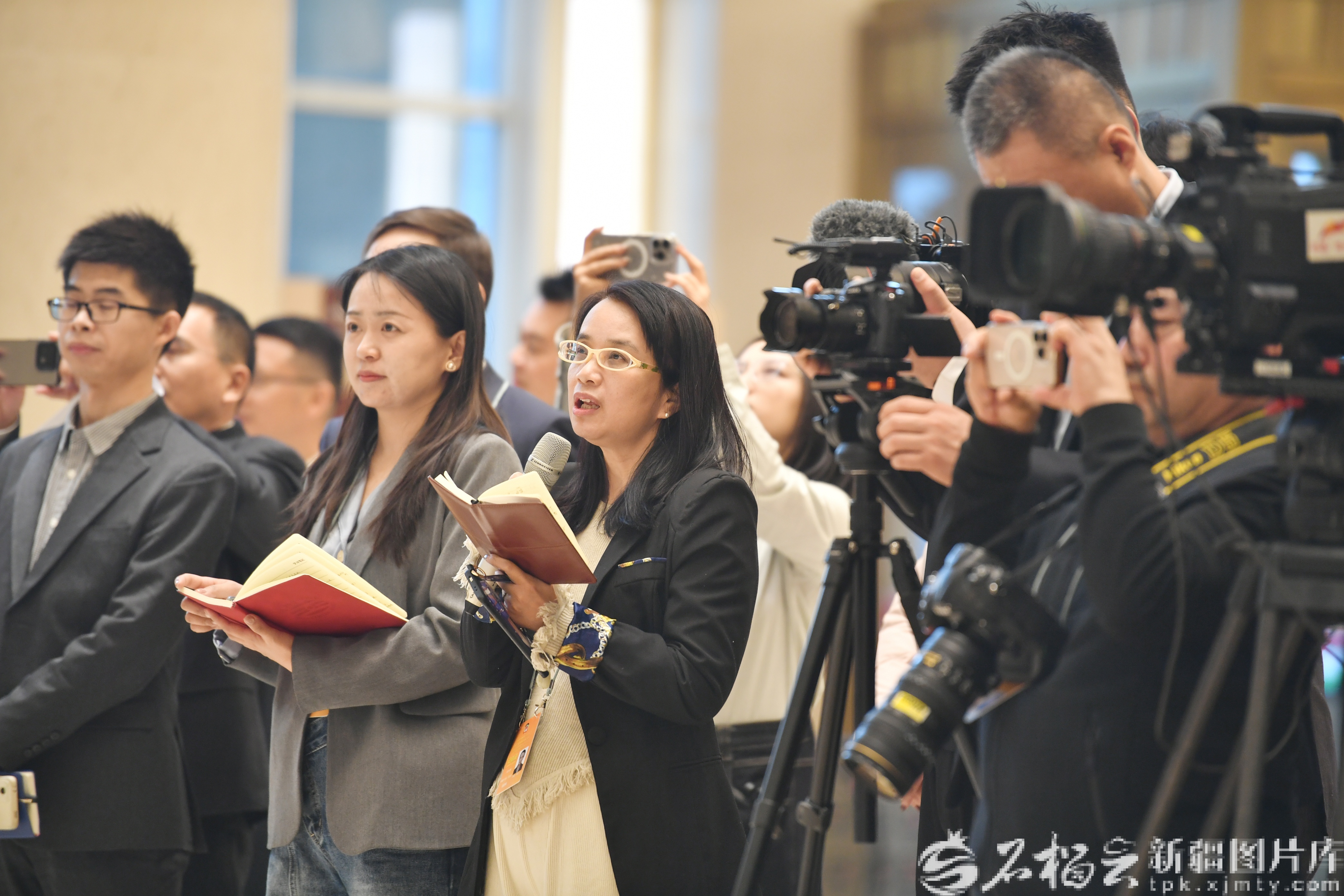 李保强委员答记者问。石榴云/新疆日报记者约提克尔·尼加提摄