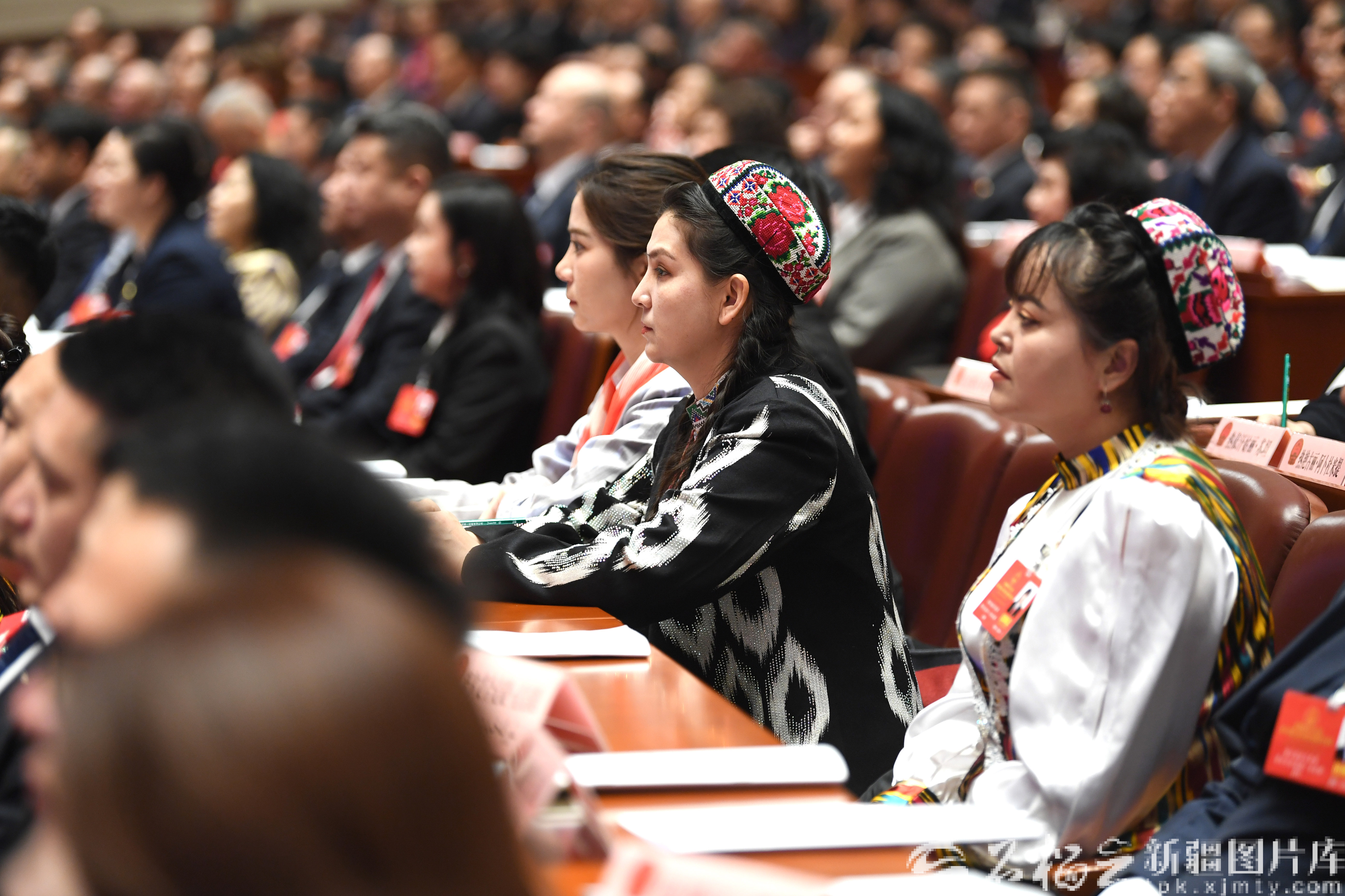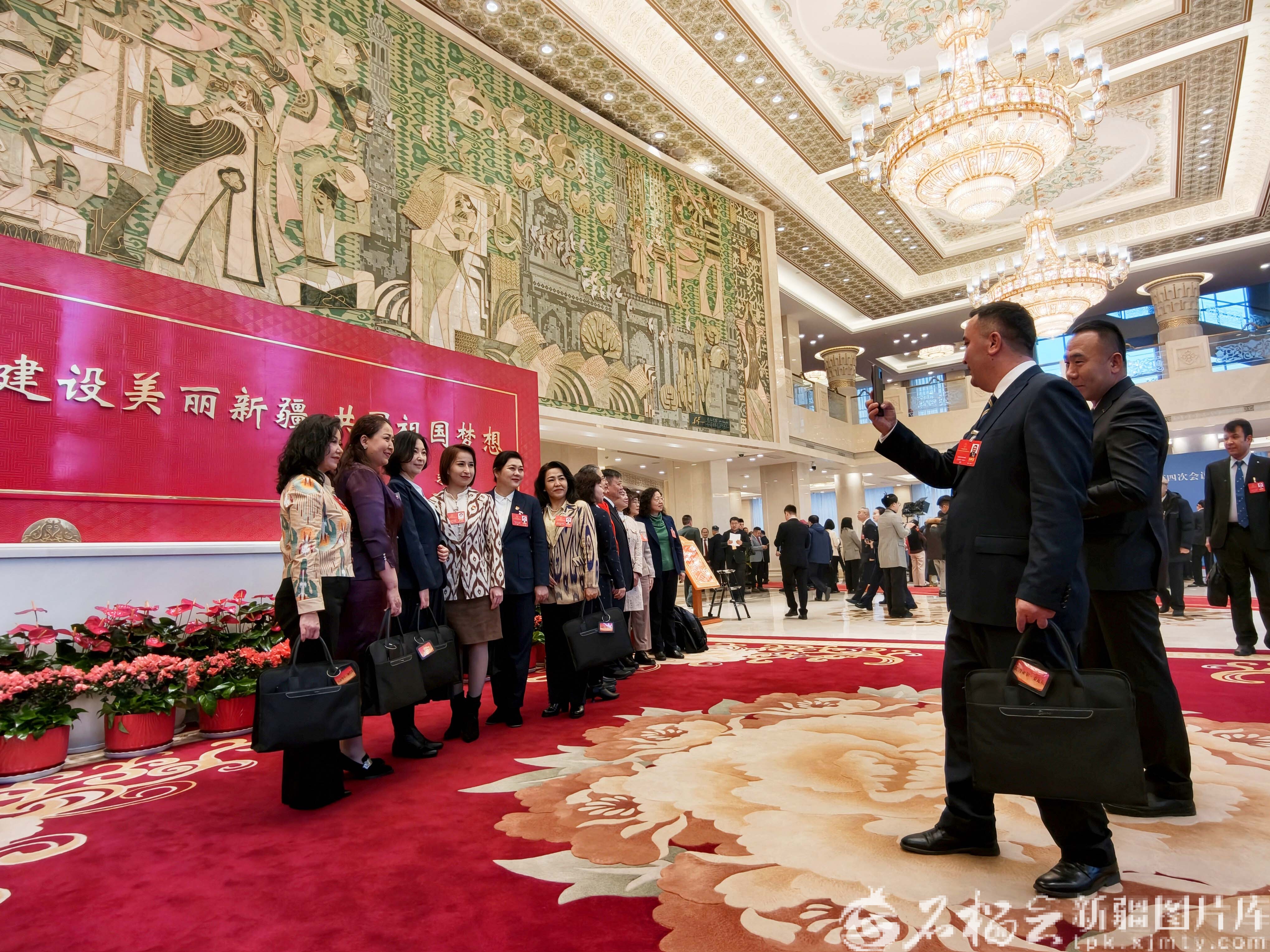 1月27日,自治区十四届人大四次会议在新疆人民会堂开幕?;嵋榍?,部分人大代表在会场合影。石榴云/新疆日报记者 汤永摄