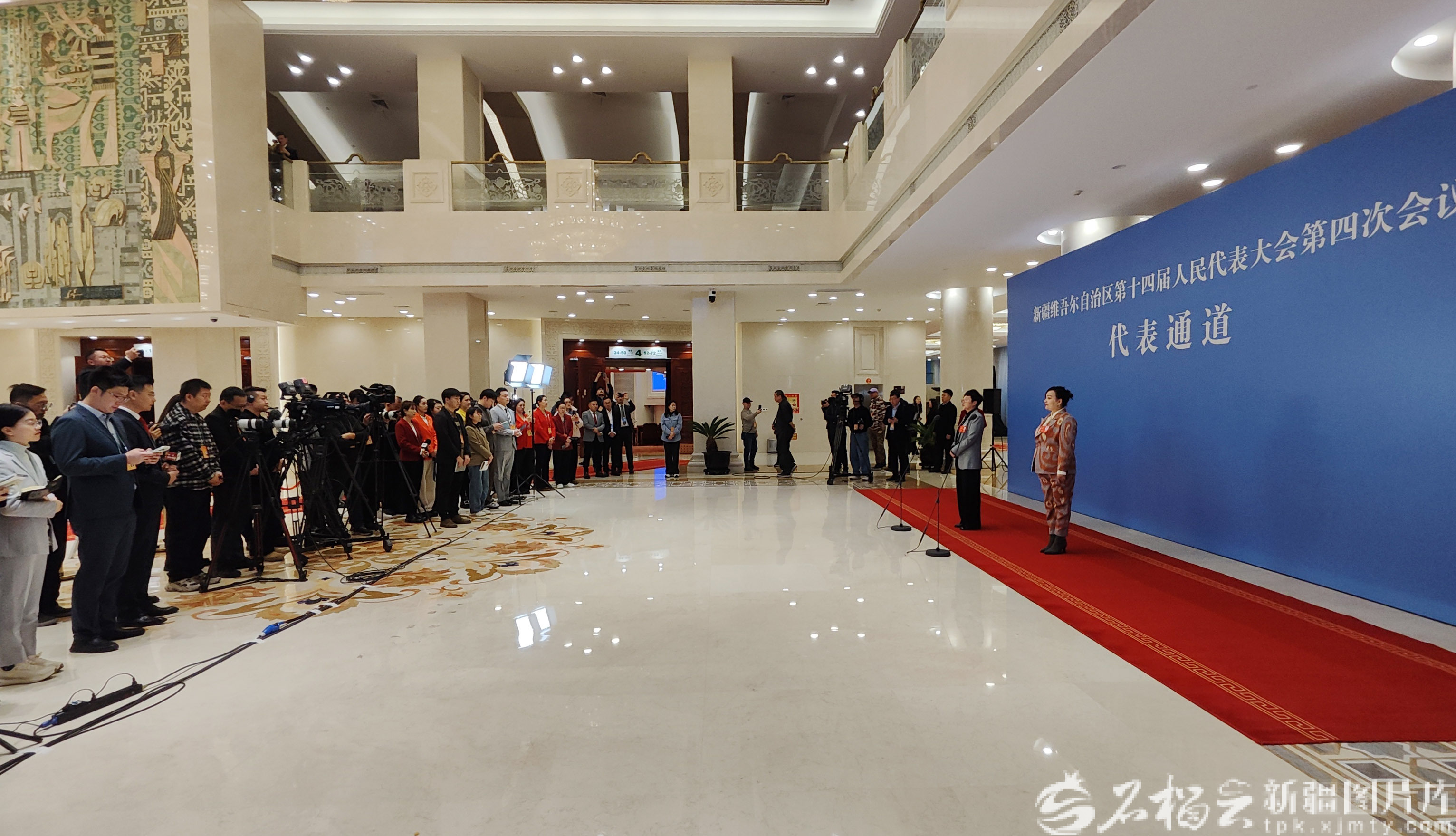 1月27日上午,自治区十四届人大四次会议“代表通道”集体采访活动现场,阿拉法特·艾海提、马新艳两位代表接受采访。天山网-新疆日报记者 蔡增乐摄