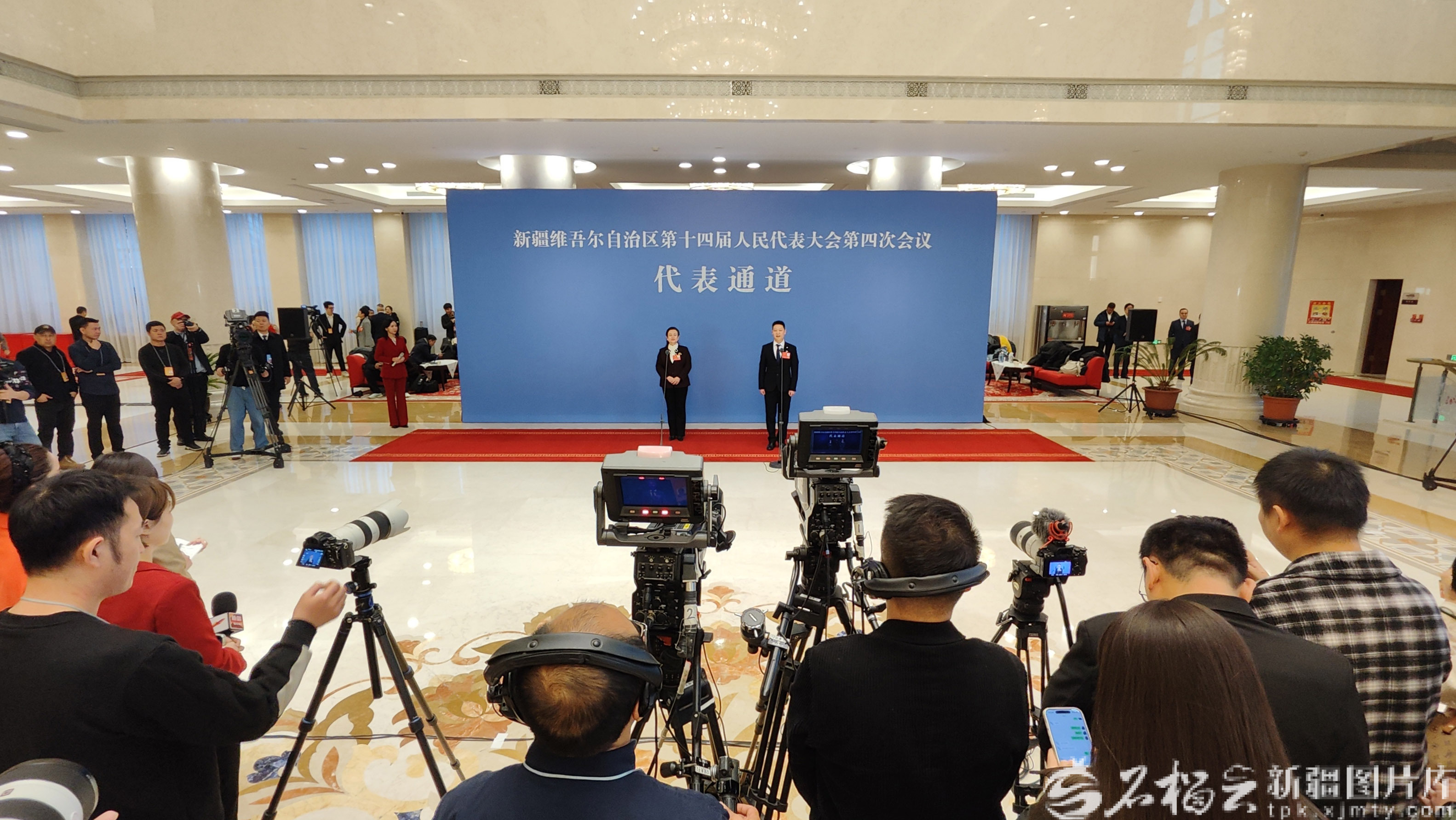 1月27日上午,自治区十四届人大四次会议“代表通道”集体采访活动现场,刘壮壮、鲁红两位代表接受采访。天山网-新疆日报记者 谢龙摄